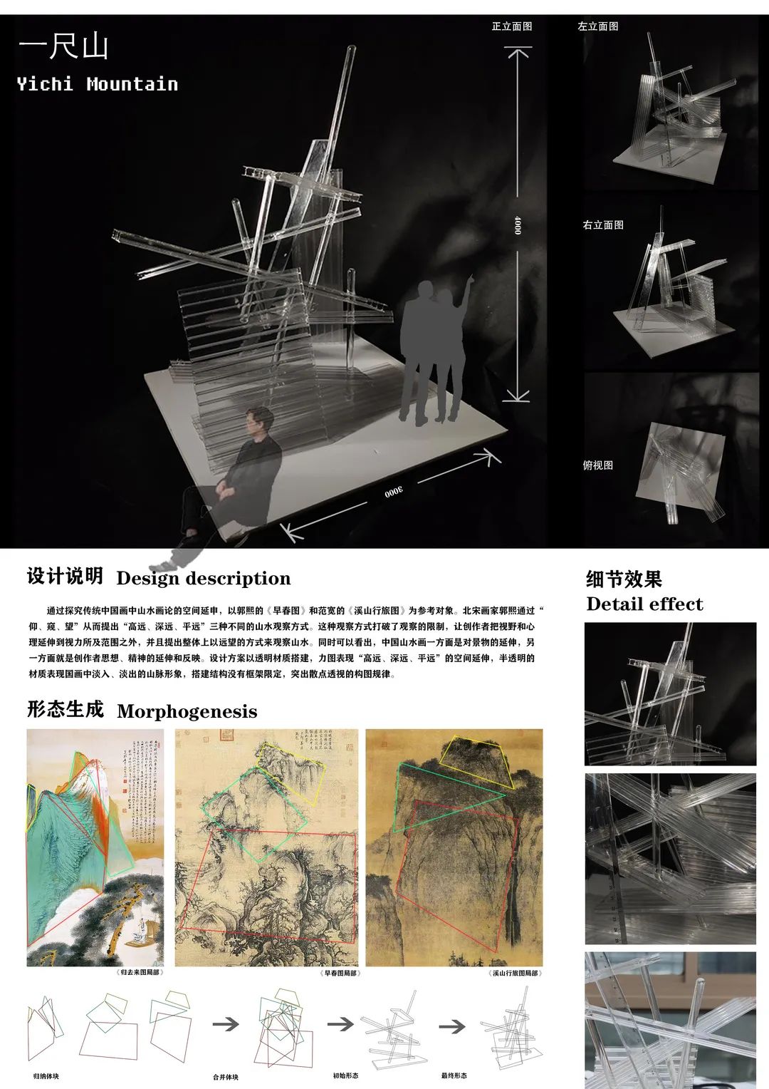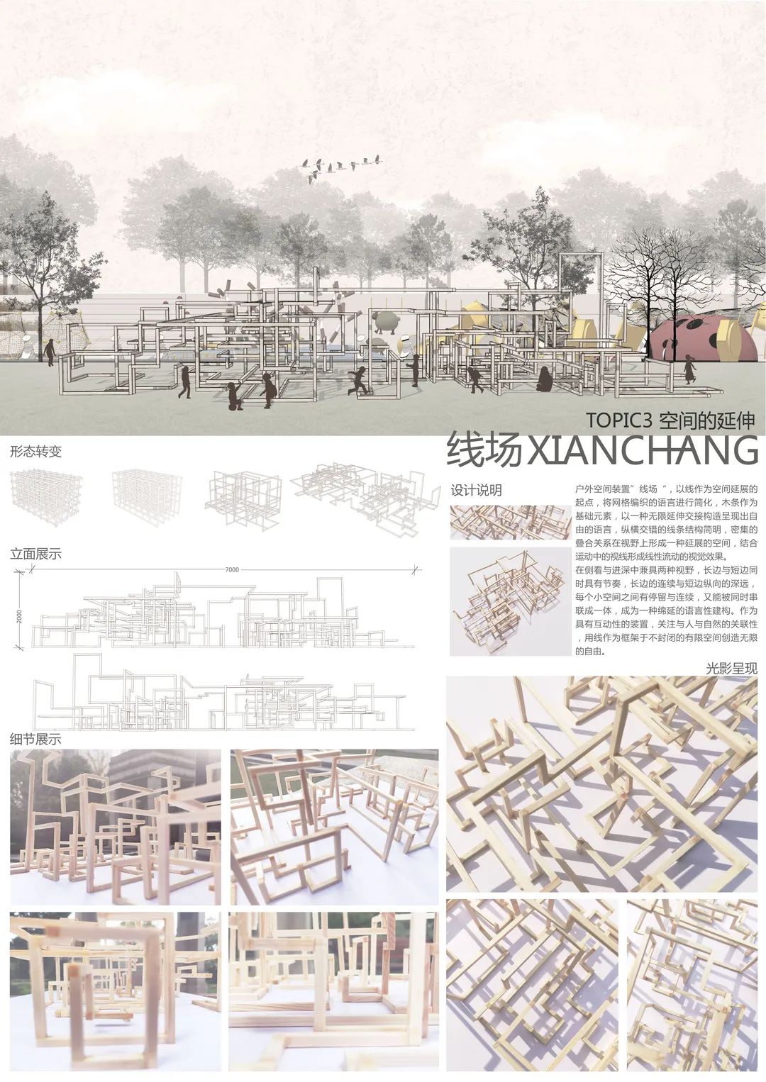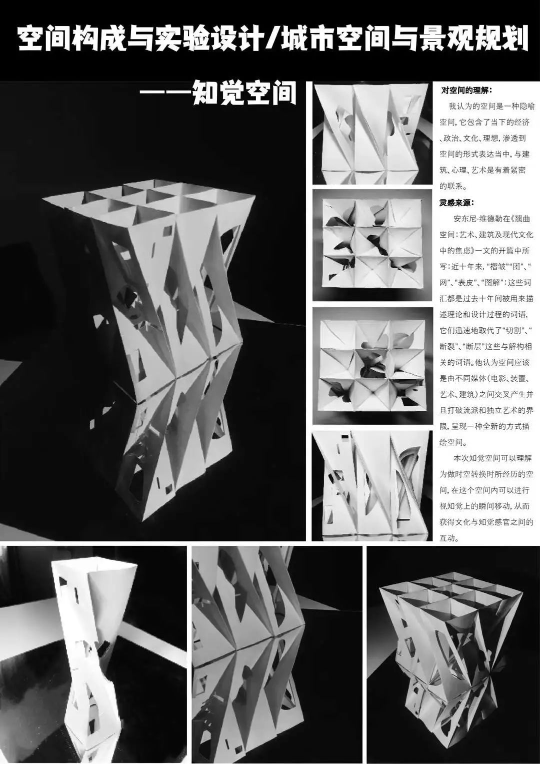 同时通过九周课程的学习,同学们在对空间的理解以及设计形式的表达上产生了多角度的了解与认识,并且对模型构造、选材、可实施、可操作性等方面也有了更深的感悟。每周的模型制作都蕴含了同学们对空间构成、形态的思考与实验。这些理论及模型制作所获得的经验与感触会伴随同学们之后的设计与实践。