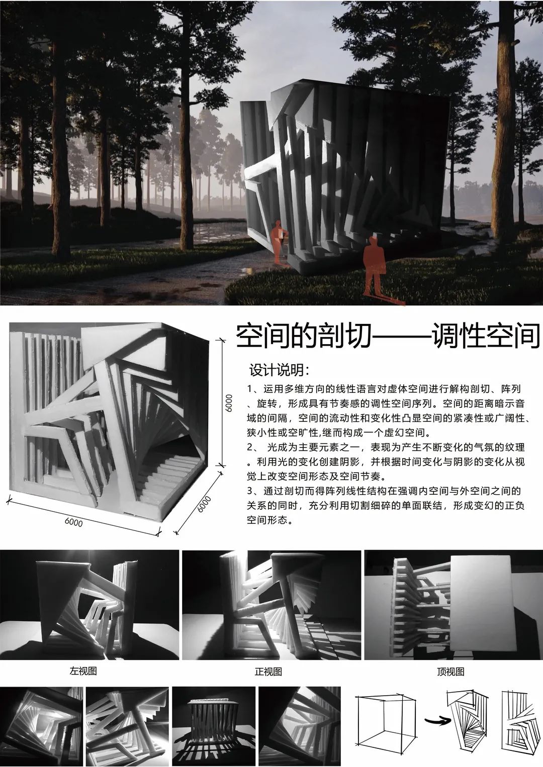 通过这次对空间的实验性探索,发现书本上的理论只是设计之根基,如何将理论在实践中运用才是重中之重。从一开始的小心翼翼到后来的大胆尝试,同学们作品的质量不断上升,出现了一个又一个精彩纷呈的模型,能看出同学们对空间的感觉都有了些新的体悟。