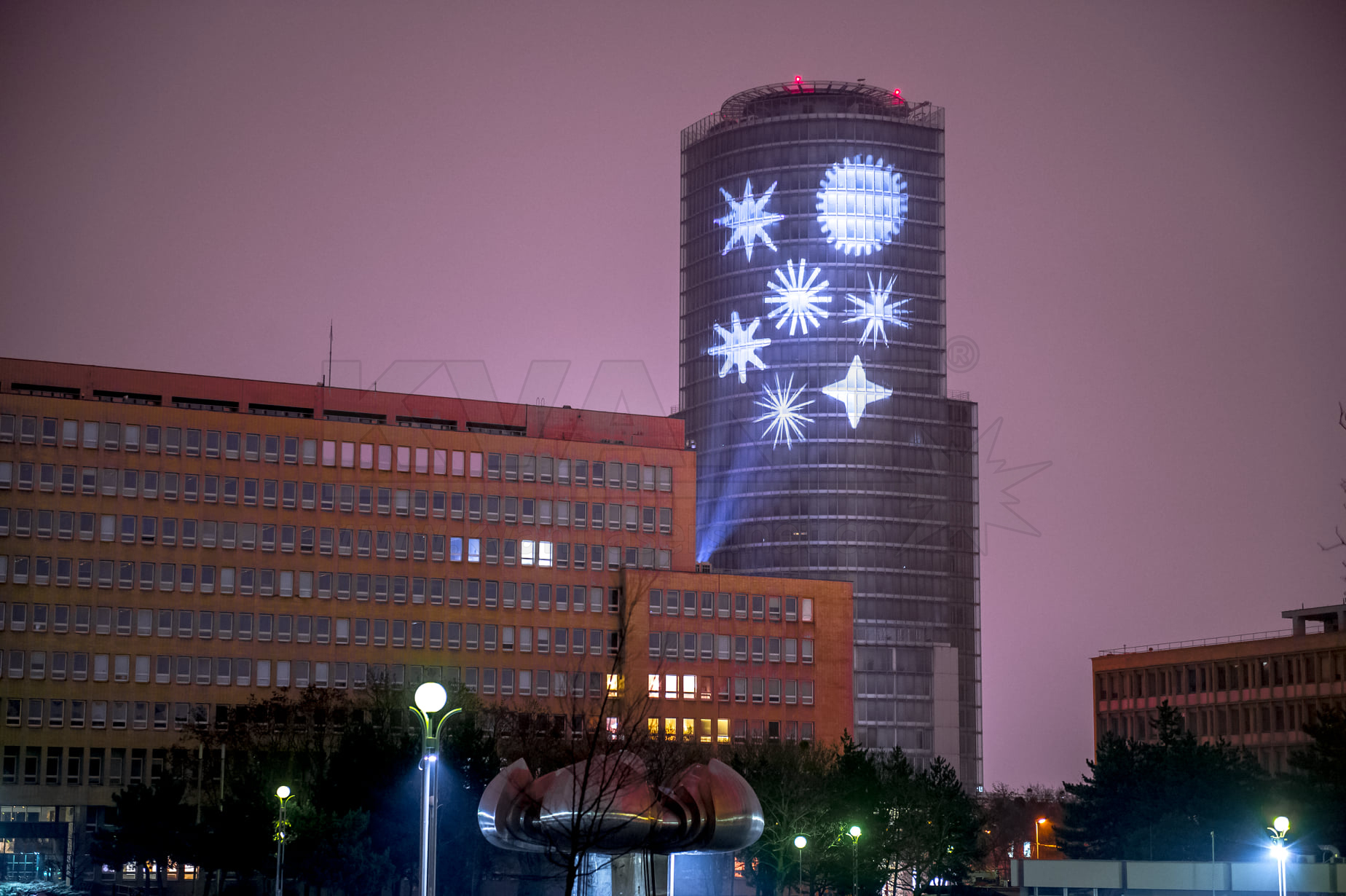 由KVANT 科旺特激光 和 斯洛伐克国家银行共同打造的 2021年全新圣诞节激光投影项目,它已经于12月23日-26日亮相