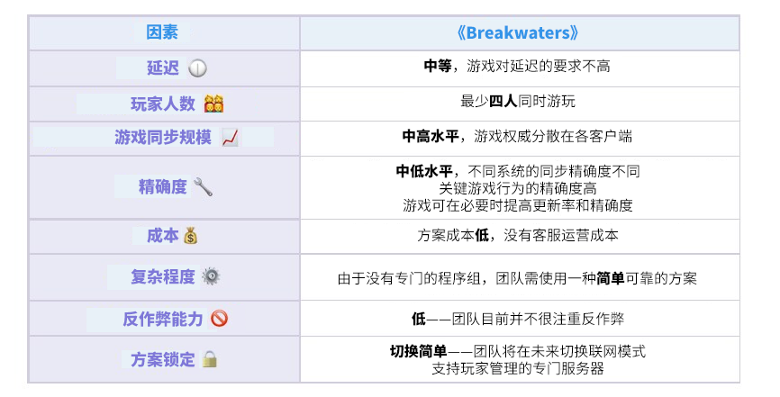 《Breakwaters》并不依赖低延迟或 Twitch(某直播平台)输入。另外,由于 Soaring Pixel Games 决定将模拟下放到客户端,所以游戏的大部分系统都可以直接改变客户端的状态,无需通过服务器许可(远程调用)来改变状态。