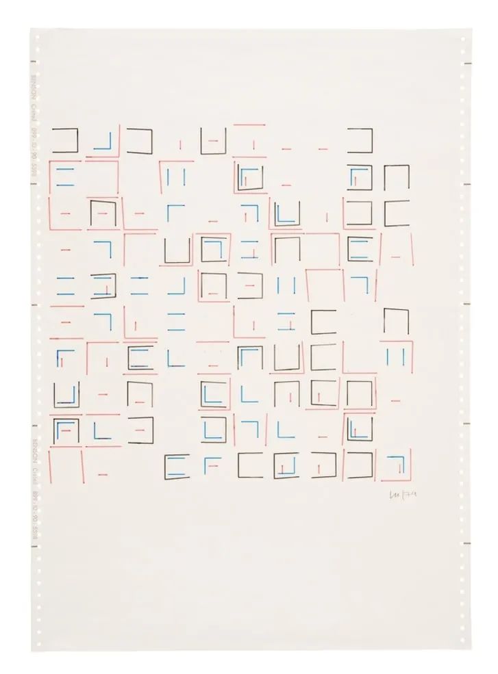 Untitled 1972,计算机艺术的早期例子。匈牙利人 Vera Molnár 创建了第一个基于代码的绘图程序。