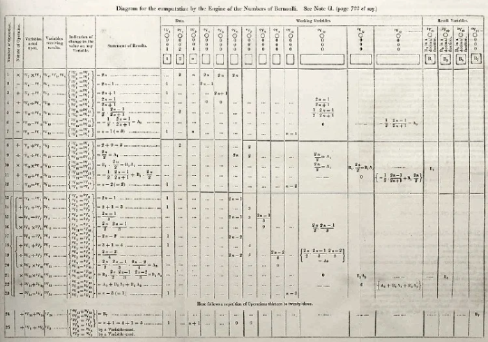 首个出版的计算机算法,来自查尔斯·巴贝奇发明的分析机草图,1842 年。