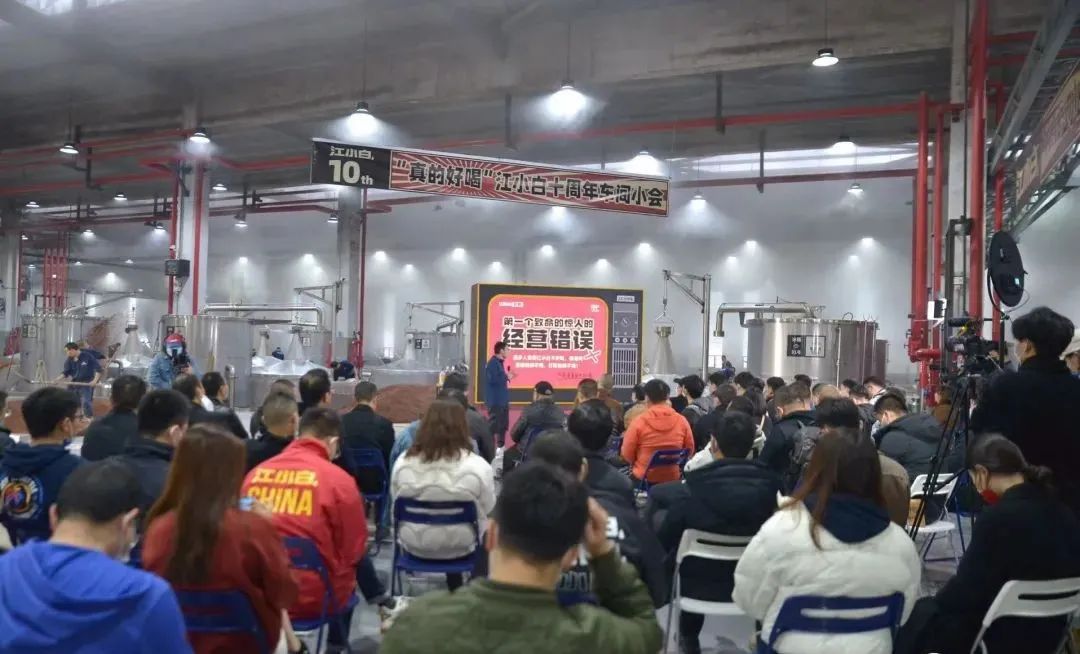 这次“车间会议”是江小白成立十周年战略发布会,企业以“面对面”的形式听取用户真实反馈,一边参加活动,一边参观工厂, 这创意属实真实、朴素。