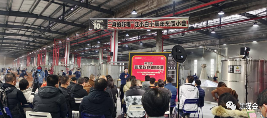 首次将活动搬到车间,江小白在自家酿酒车间举行了一场别开生面的“车间会议”,并全程向公众直播。