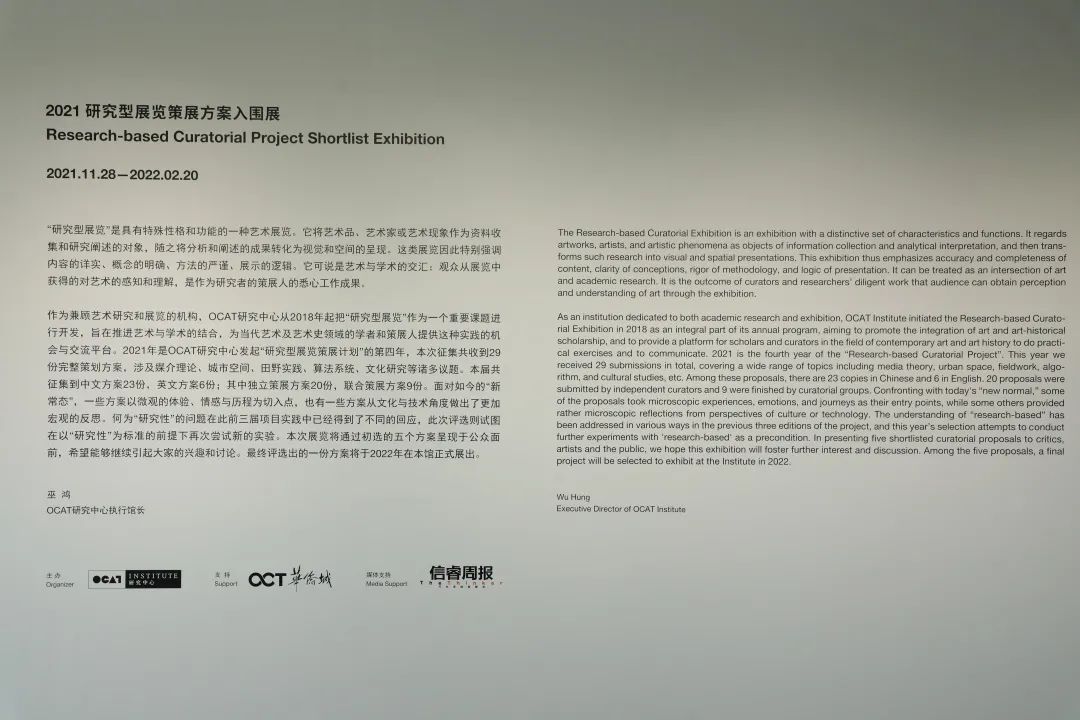 From November 28, 2021, to February 20, 2022, the OCAT Institute presents “2021 Research-based Curatorial Project: Shortlist Exhibition,” a public exhibition of the five shortlisted curatorial proposals of the “2021 Research-based Curatorial Project”.
