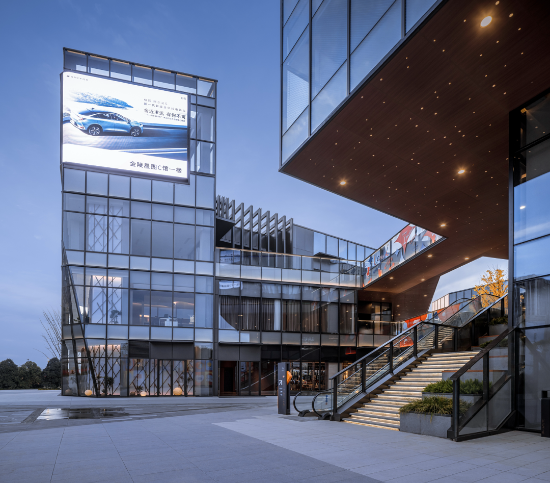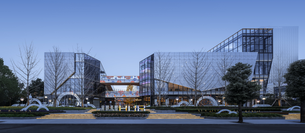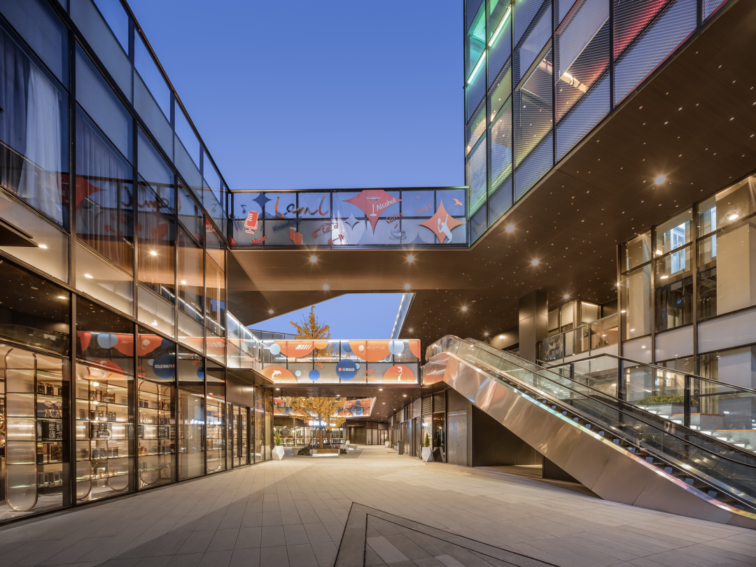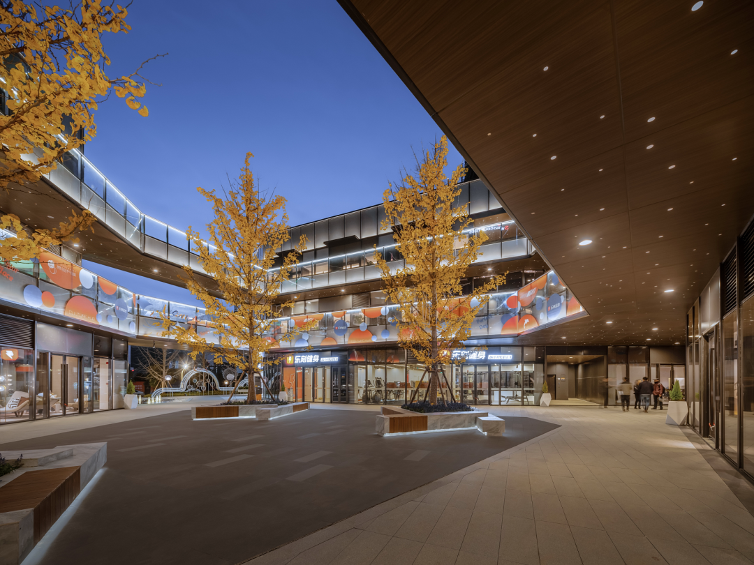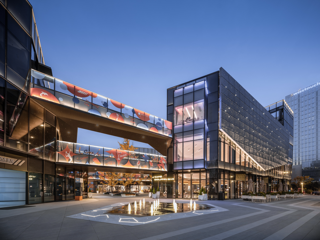 建筑整体玻璃幕墙采用超白玻璃,提高采光与内外视线的通透性,打造商业氛围通感体验。
