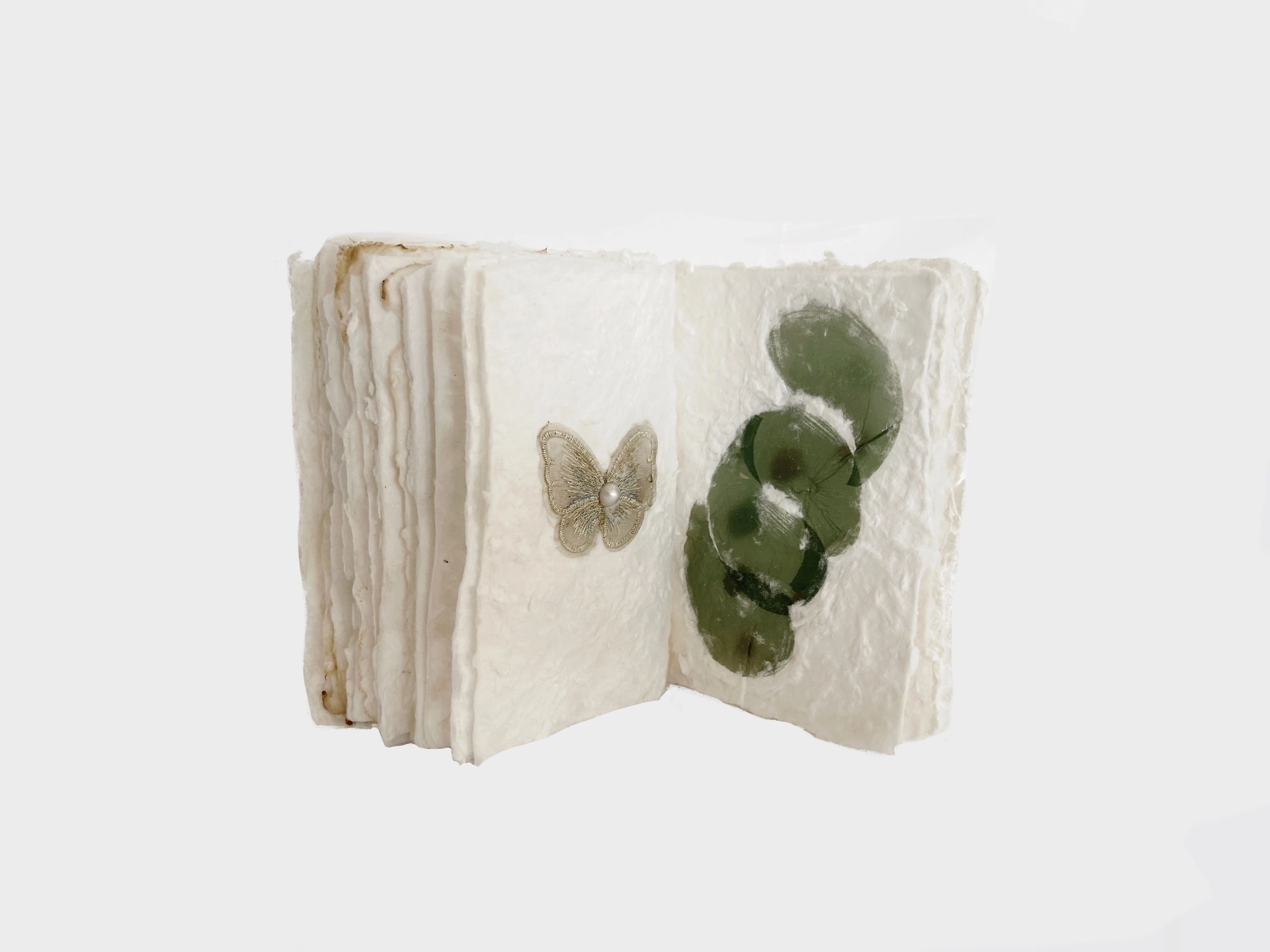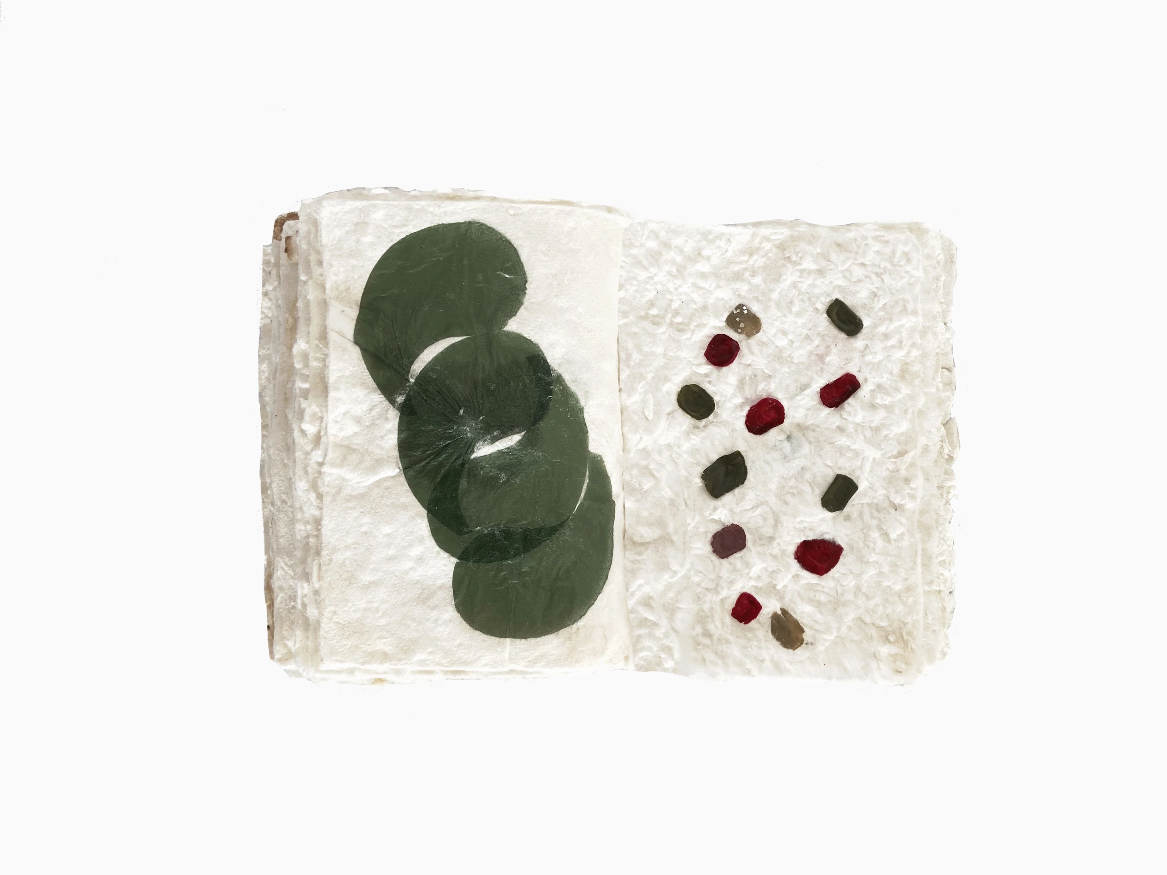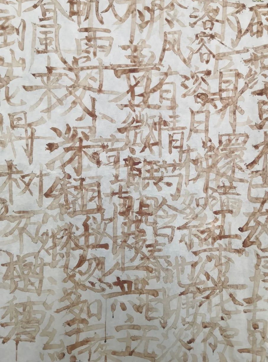 作品说明:利用碾碎的花得到的汁水组合书写赞美花的诗句表达对花的喜爱,制作材料的过程与书写内容形成的反差。