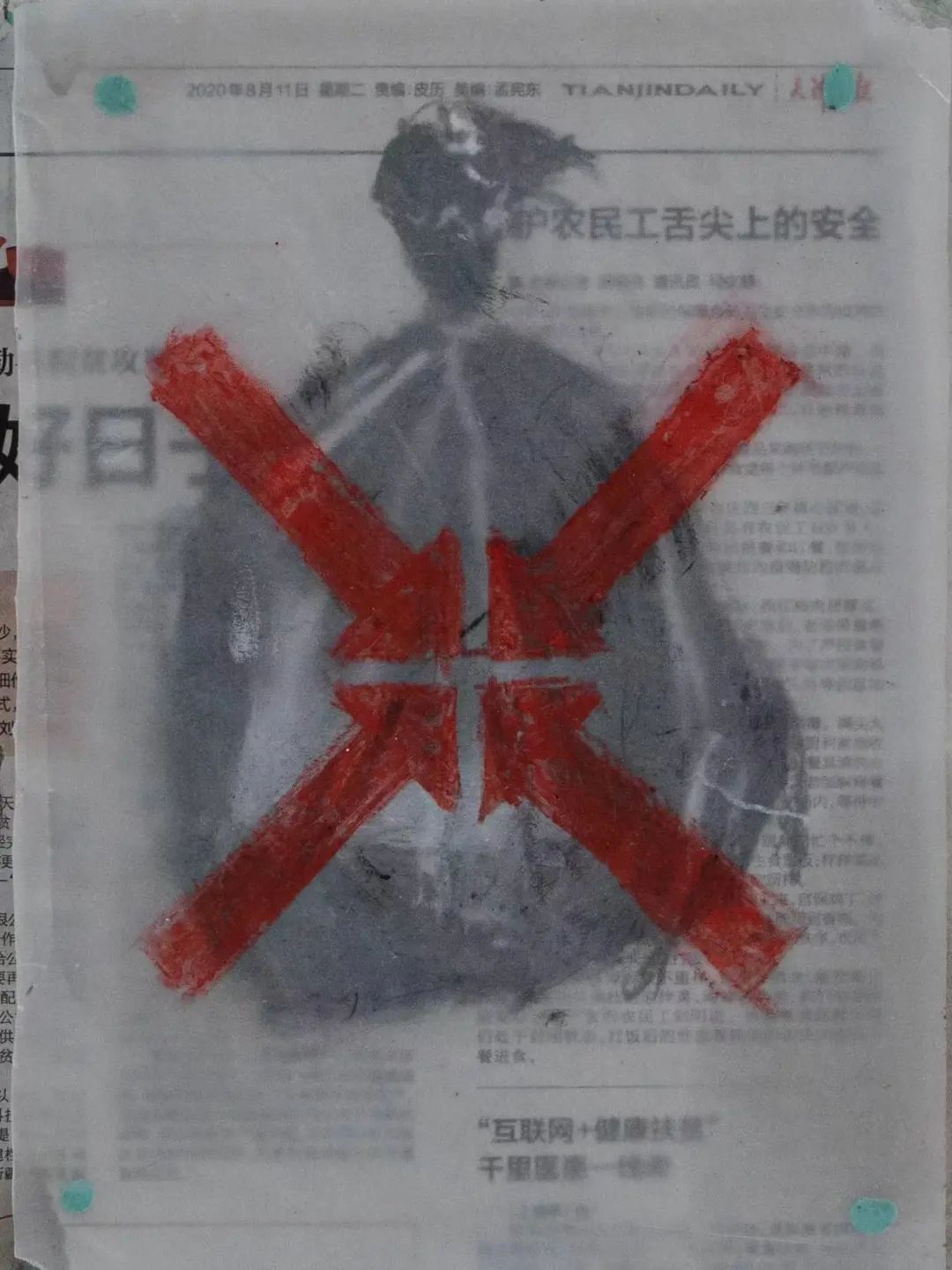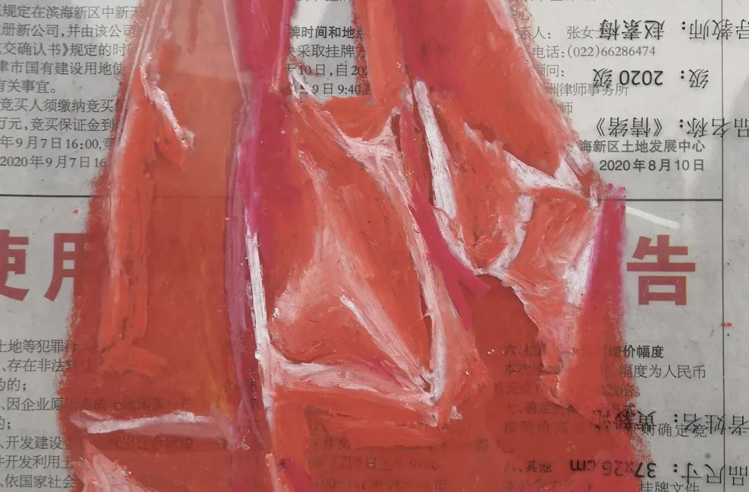 作品材质:红格子纸、硫酸纸、报纸、蜡笔