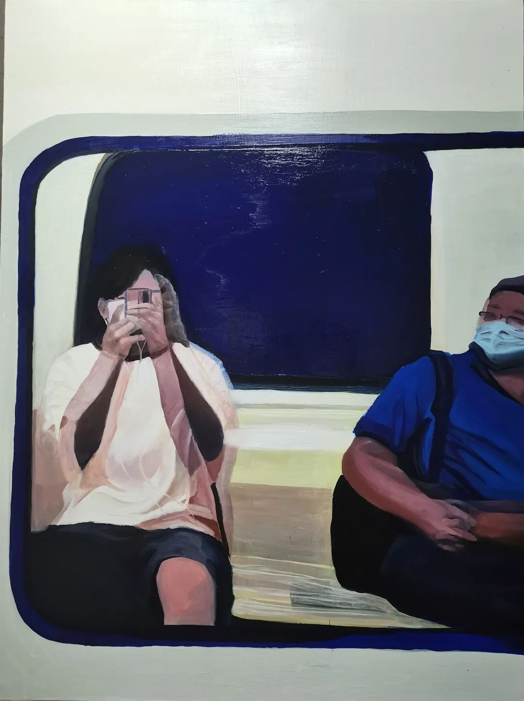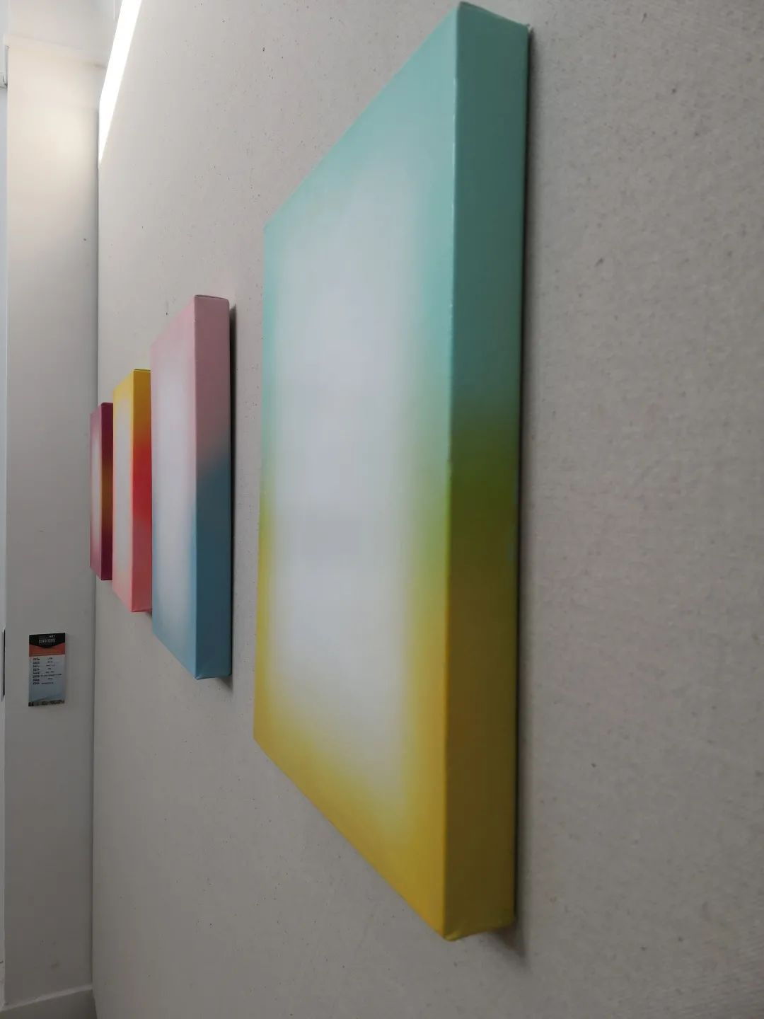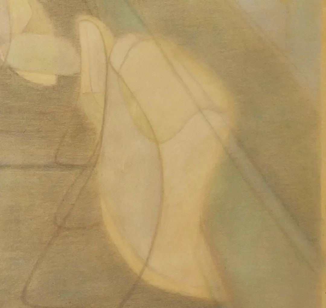 作品说明:画面呈现的是一种状态——源于我近来的生活感受:疲惫、持续与放松、舒缓的进行时……物体线条的柔软有力,呈现的疲惫的状态,所处空旷静谧的空间,在颜色的弥漫和交错状态下,出现的氤氲感,抽象地传达出丝丝的抚慰,整体地塑造出一幅有呼吸的画面,使人归于安定的休息状态。