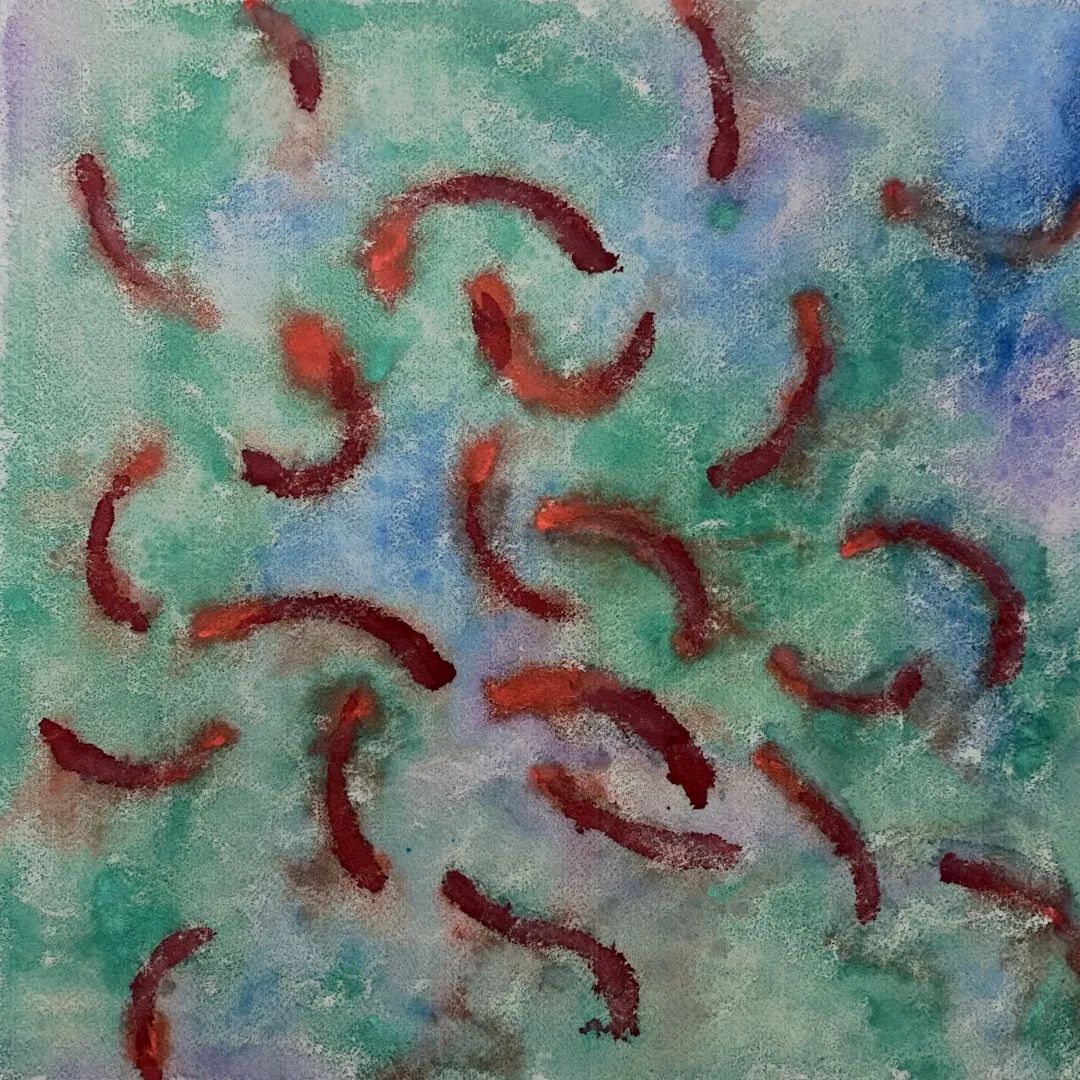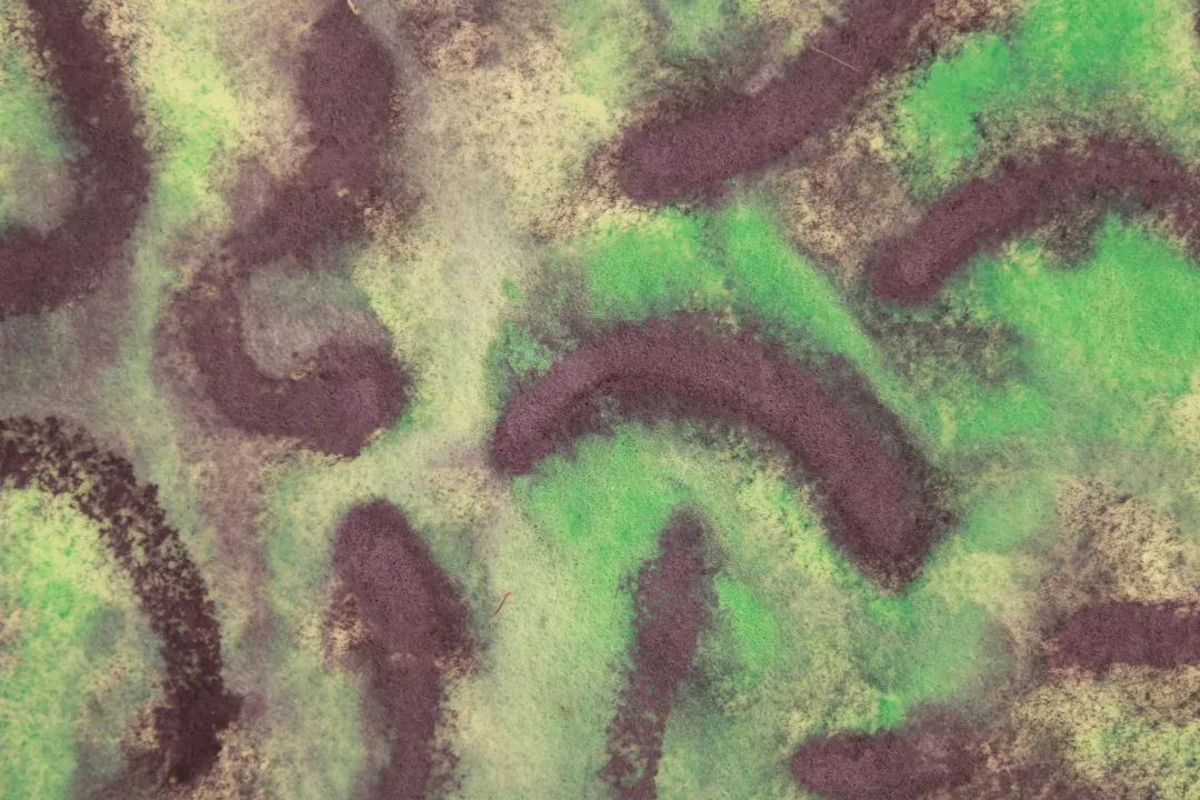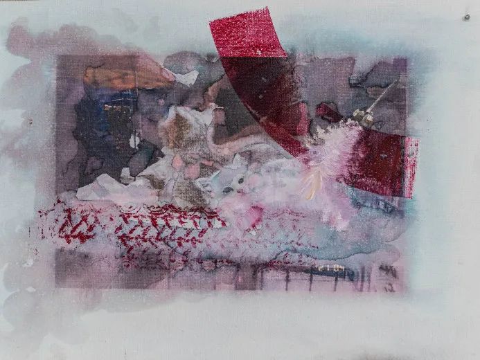 作品说明:毛毡与水性颜料的碰撞,柔软与柔软之间的吞噬,如棉花中的蠕虫一般。