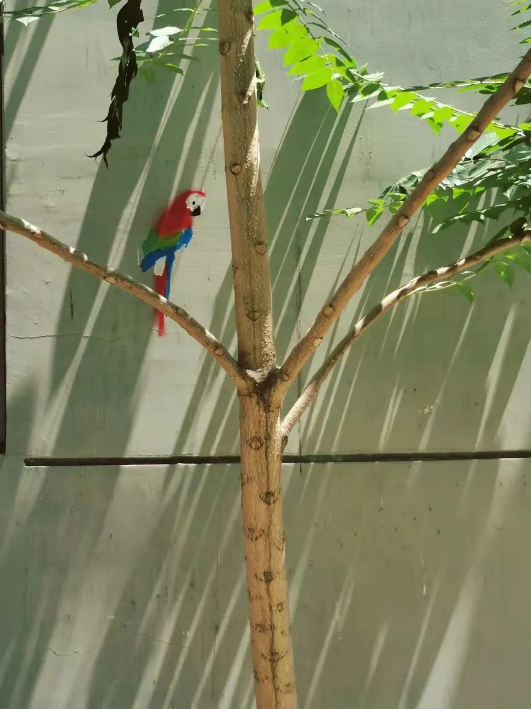 作品说明:以特殊的角度,完成喷漆画与树木的结合,让野生动物穿梭在现代的都市中。