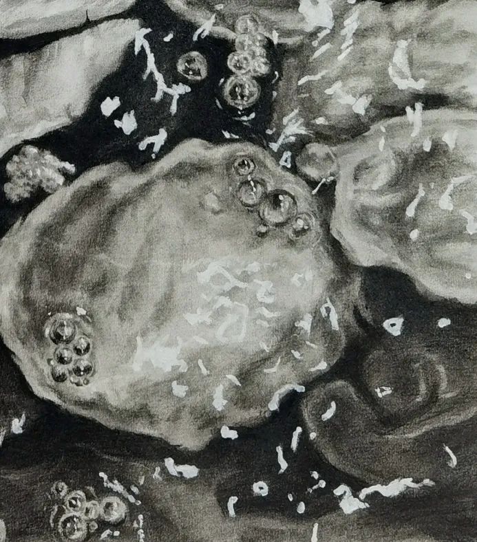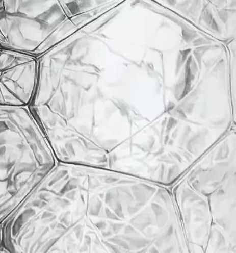 作品说明:这件作品用精微的手法刻画出一颗颗泡沫,同时也画出了钻石的硬朗结实,将软的材质变硬,二者之间存在反差。