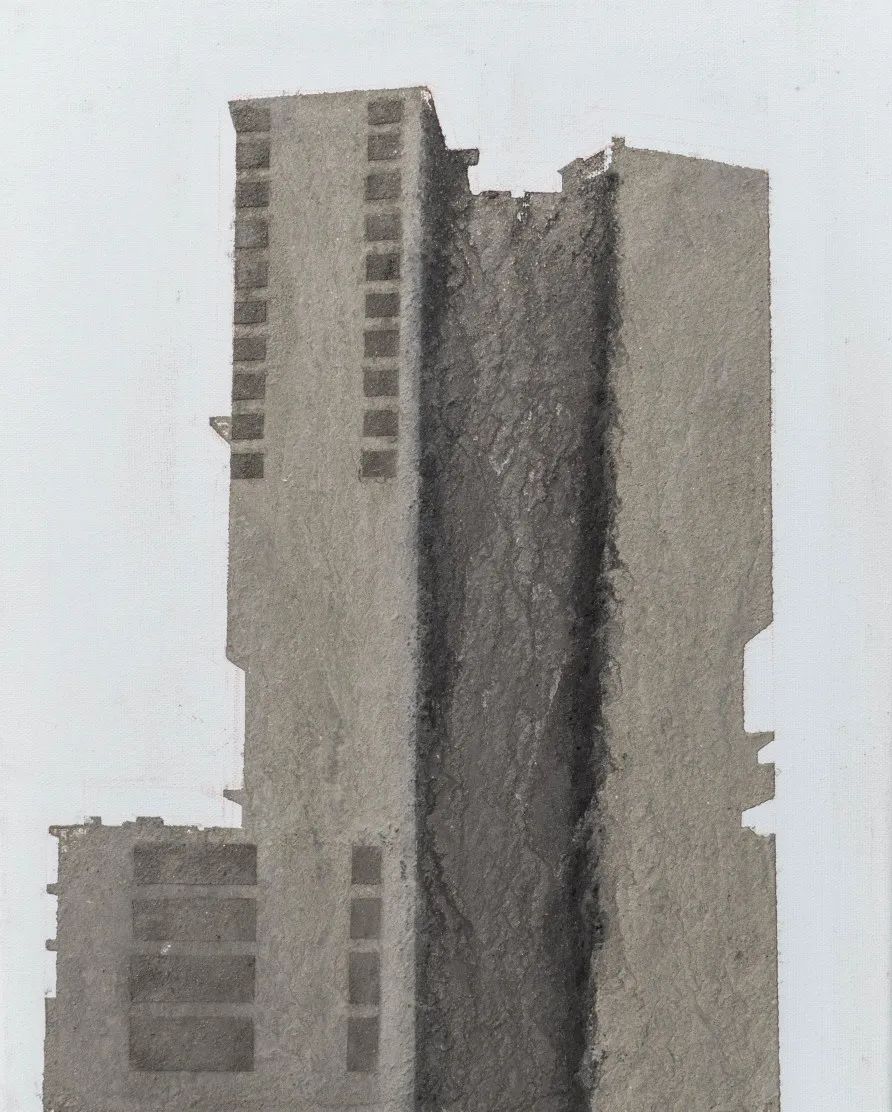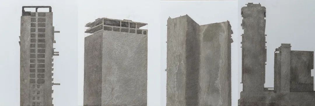 作品说明:或许在城市里也能经常看到各种楼盘上正在建造还没建成边缘还露着钢筋的一格格水泥楼房,有些还包裹着绿色施工网,还有些是废弃的空无一人的烂尾楼。有时我真觉得它们是乐园一般的存在,在它建成后每个人只能缩在远处看如同像素点般的存在,却要大部分人一生的打拼,而且每间格子中的人际关系如同水里的氧气十分稀薄,而在它建成之前,如果允许进入,人可以穿梭在各个房屋间,没有建成的墙和门,没有装饰,表里都是水泥,我感受到的是自由,放松。我还一直想象我能拥有这样粗糙的,未经装饰的,还没有门的一栋楼,一个人拥有那么大的空间,真奢侈想在里面做很多事,在它建成之前,这空间属于一个人。