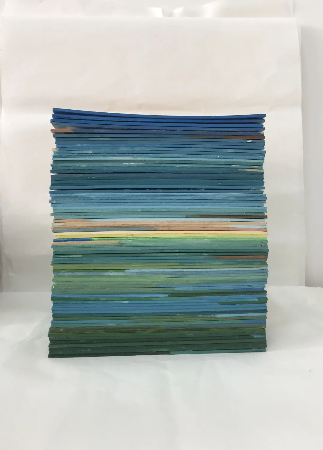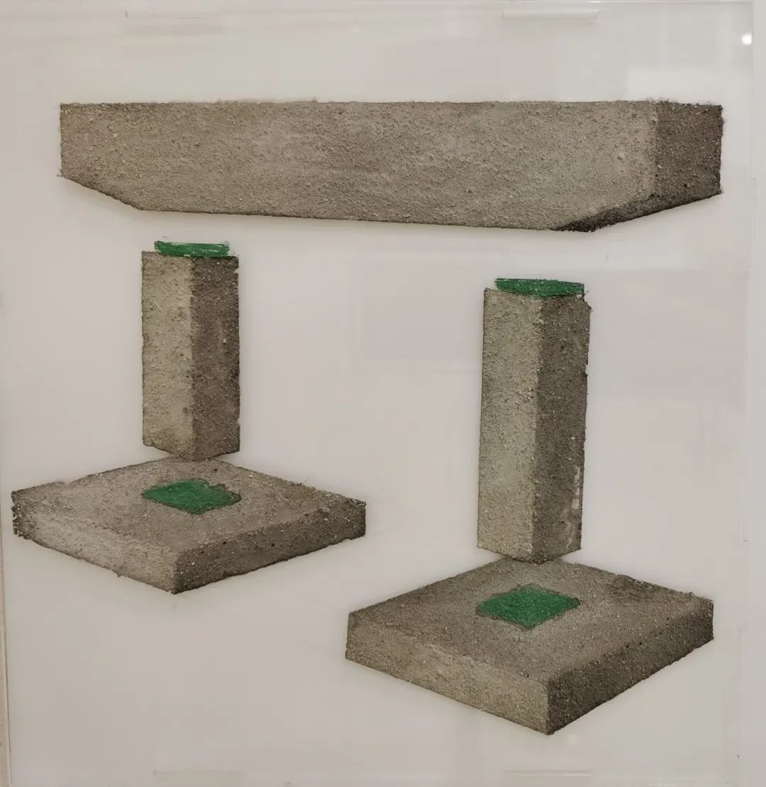 作品说明:“切片”用的是最常见的和最便捷的一种建筑材料—水泥,它的斑驳粗糙的的表面肌理有种现代生活的颓废感,也是我感觉亲切的材料(以前我和我爸经常去工地干活)。这是我记忆情感的切片,也可以说生活里局部时空的切片。