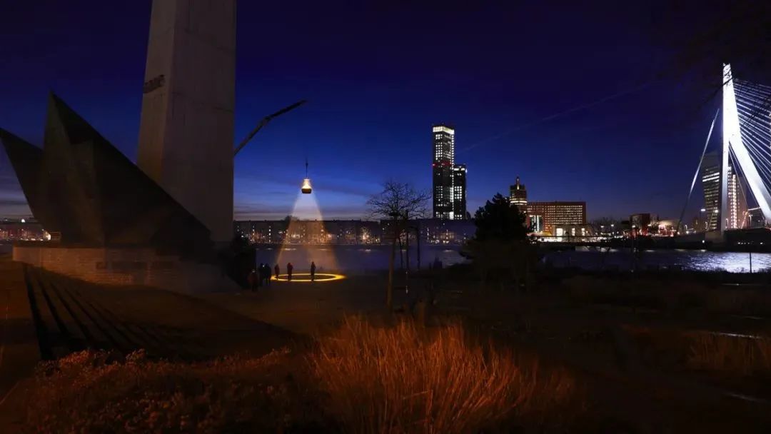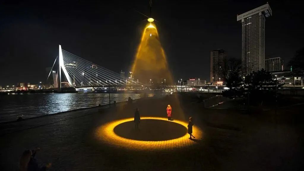 此装置所采用的灯光,是经科学研究后能消灭公共场合中高达99.9%病毒的特殊灯光,对人体也更为安全。这盏俨如人工太阳、洋溢着异星氛围的艺术装置,目前矗立在鹿特丹知名地标——伊拉斯谟大桥(Erasmus Bridge)上。