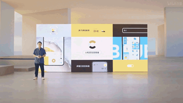 创意开场:大屏幕画面右侧手机拨号开场,紧接着就是开场主持人出场,直接上产品亮点。而整场发布会就以大屏幕上微信对话框为主要引导媒介来介绍各个产品。