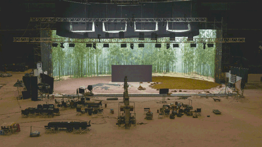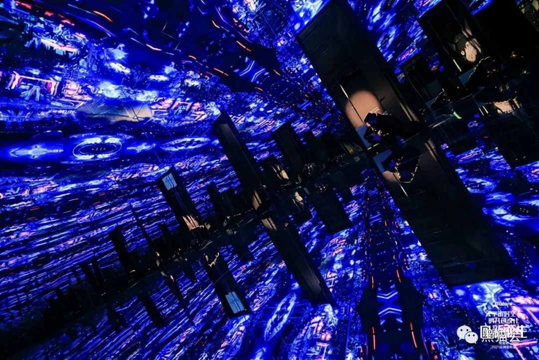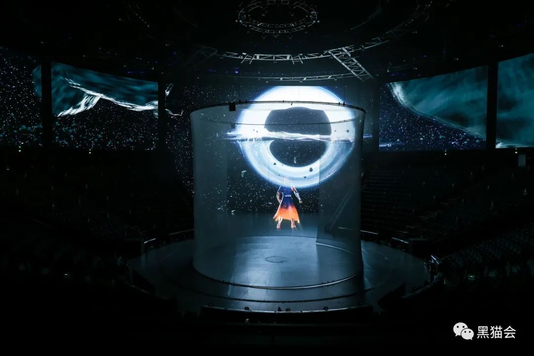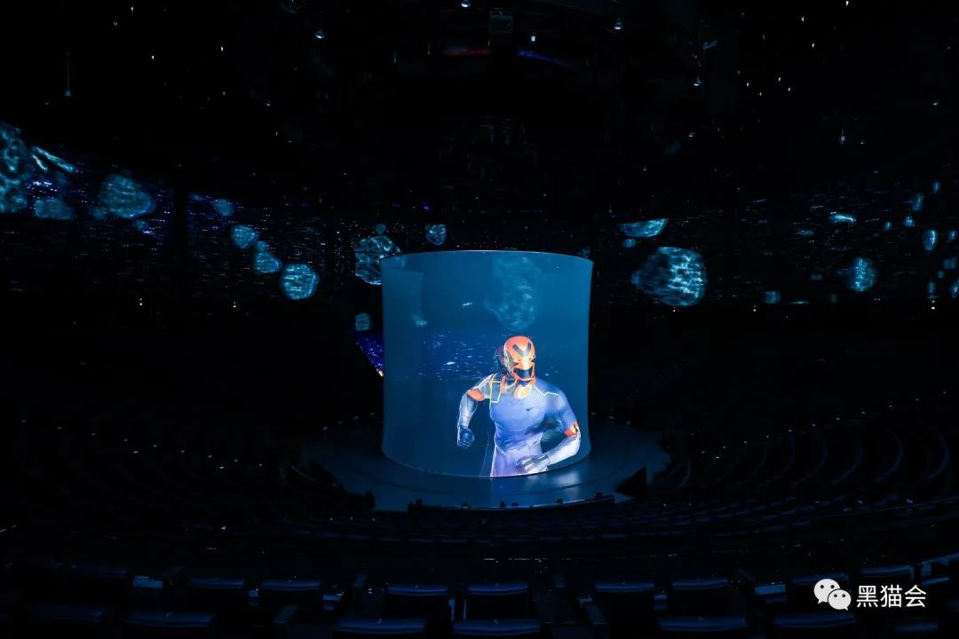这场线上发布会最大的特点是虚实结合,屏幕和常规一样,使用了350平方米的LED屏,特别的是,本次地屏不再是包裹的形式来配合主屏,而是让地面更真实。