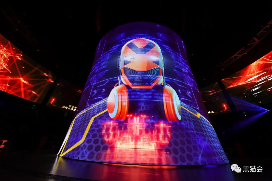 “智能数码”场景布置:座位席变成“键盘”,大屏幕变成“笔记本显示屏 ”,还有巨型鼠标、耳机、音响围绕在现场,来宾们坐下来就感觉自己身处“科技世界”。