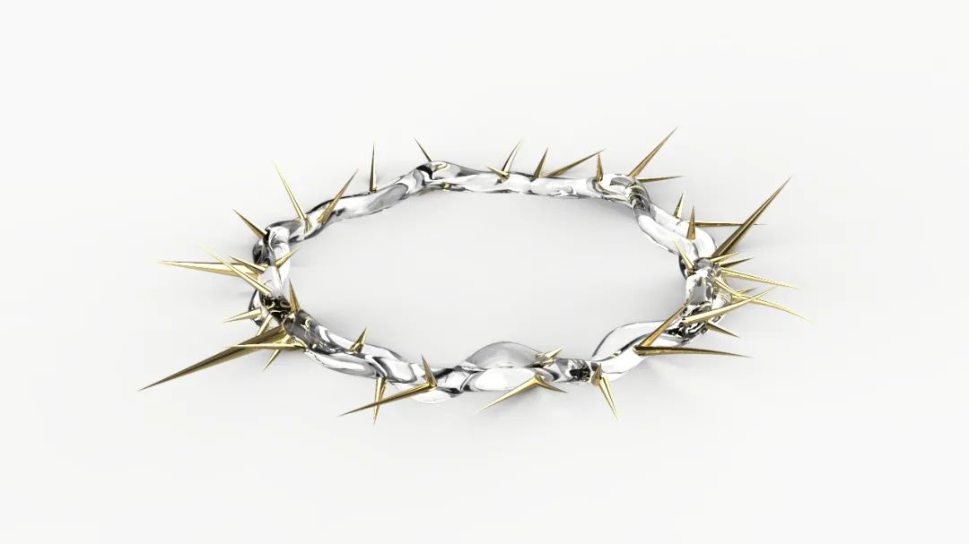 这是我在2020年创作的作品《母爱的荆棘The thorns of mother's love》。这组作品由一件项链与一段行为影像组成,主要表达了伟大的母爱有时也会让孩子窒息。母亲给孩子所有冰冷刺痛的数落、命令、唠叨、负定义、埋怨、怒吼,像荆棘般控制着孩子,冰冷着孩子的热情。但不论母亲怎么对待自己的孩子,孩子都会对母亲有着满分的爱与依赖,这些爱(佩戴时由体温隐喻)逐渐消融那些冰,使刺四散掉落,唤起母亲内心的羞愧与动容。这个项圈,成为我作为母亲深刻自省与自我修正的一件首饰作品。