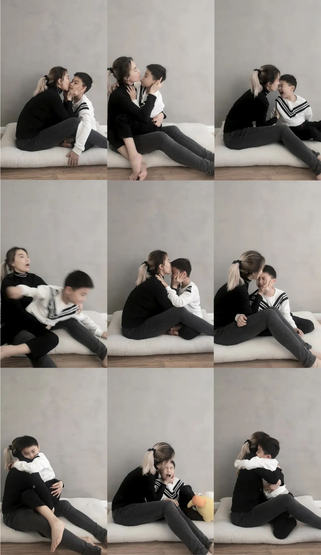 同时,行为影像作为这个作品的一部分,通过影像记录2557次母亲对孩子的亲吻,将母亲与孩子之间的爱与规训、依赖与对抗、控制与反控制的权力制衡关系呈现出来。2557次是将孩子从出生到现 在与创作者作为母亲生活的7年时间(即2557天)转换为亲吻的次数, 以表达母亲对孩子主观的、强烈的、持续的爱,但这种爱夹杂着过多的控制欲与负面表达,在带给孩子温暖的同时也带给了孩子伤害。