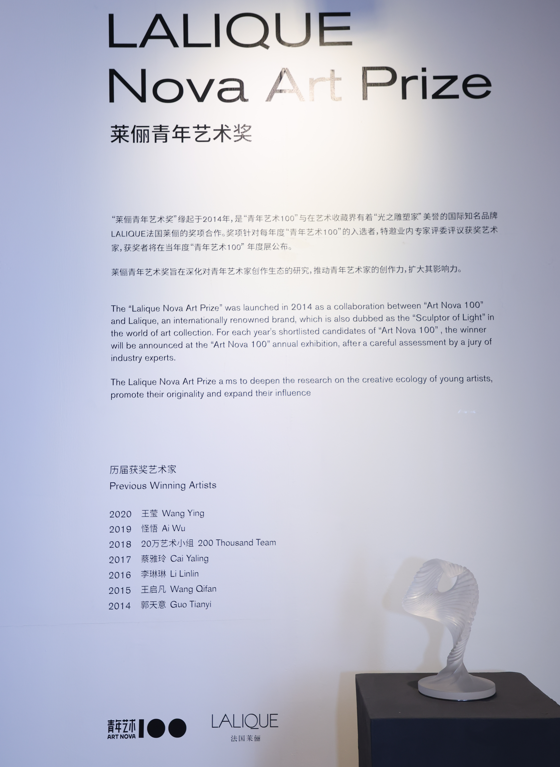 本奖项缘起于2014年,是“青年艺术100”与在艺术收藏界有着“光之雕塑家”美誉的国际知名品牌LALIQUE法国莱俪的奖项合作。奖项针对每年度“青年艺术100”的入选者,特邀业内专家评委,共同评议获奖艺术家,获奖者将在当年“青年艺术100”年度展览公布。莱俪青年艺术奖旨在深化对青年艺术家创作生态的研究,推动青年艺术家的创作力,扩大影响力。