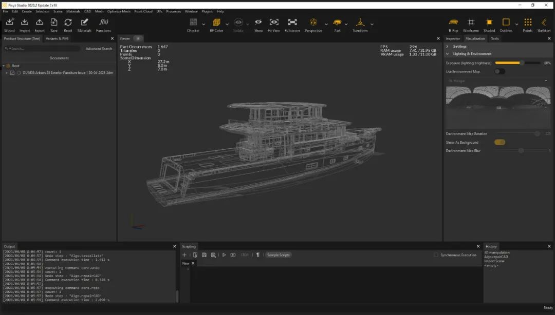 使用 Unity Pixyz Studio 提供的各类工具来将 CAD 数据细分为三角形网格、创建纹理 UV、并优化几何形,团队还能使用许多特色功能来修复它们。