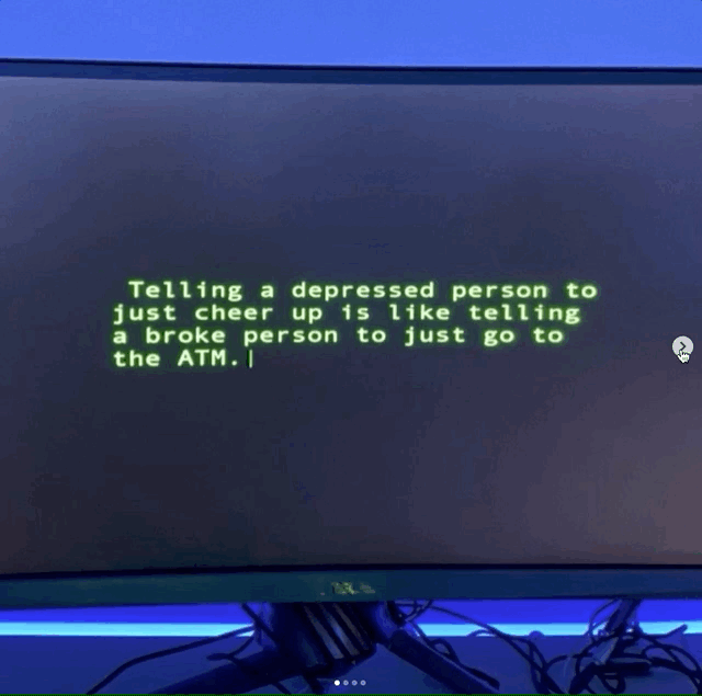 《忧郁推特》 筛选并分析了用户那些选择表达抑郁情绪的推文,强调心理健康与社交媒体之间的关系。除去文字之外的所有内容,Webb 他自己与抑郁症持续斗争了多年,他想为那些通过数字世界表达自己痛苦情绪的、在进行同样战斗的人们发声。