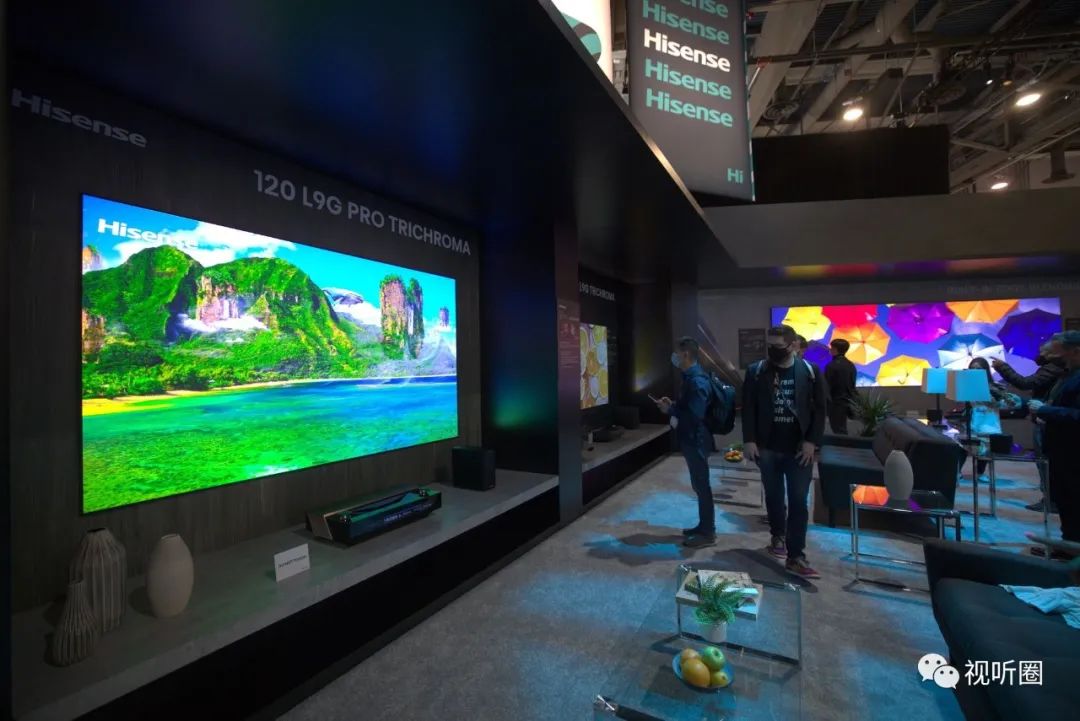 120L9 Pro 只是CES 2022上,海信展示的这一新技术的第一步:2022年的海信全新三色激光电视系列还将覆盖75到100英寸。在75英寸和80英寸选项中,新产品的体积将比以前产品缩小了20%、色域表现也会更好——这就是新机L9H系列的核心创新之一。