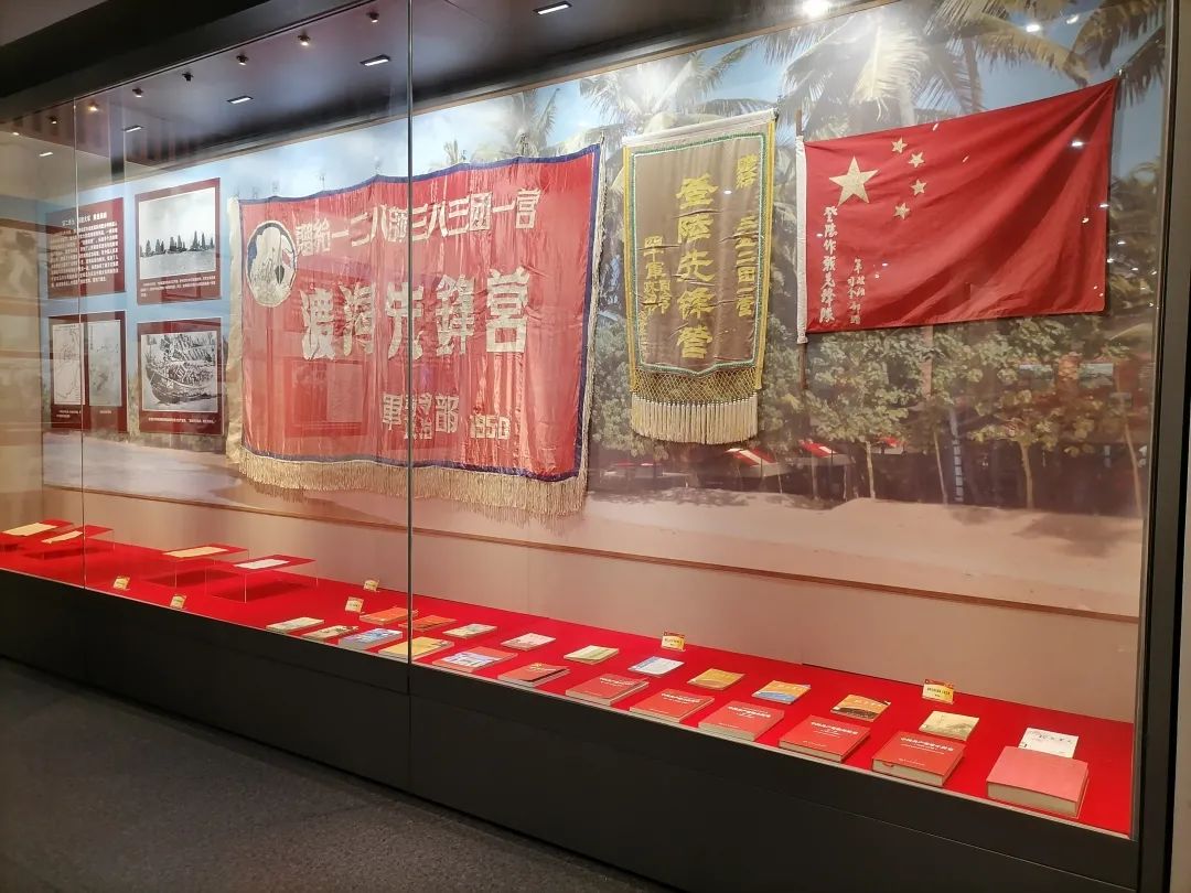 设计亮点 一是重点文物重点展示。例如采用独立玻璃柜+电动转盘展示“1949年周恩来送给王国兴的水烟筒”,此件文物摆放在参观路线的转角处,既能吸引观众目光,又可全方位欣赏文物全貌。二是展示相关书籍。如《琼岛星火》《琼崖纵队史》《黎族人民领袖王国兴》等经典研究著作,特别是《琼岛星火》系列刊物,资料翔实,第12期是“白沙起义专辑”,刊载了起义亲历者的回忆录。三是巧妙使用仿制品和复制品。为弥补展品的不足,仿制了多位领导人对白沙起义和王国兴等人主动寻找共产党的帮助这一历史事件的评价题词。同时,为了体现战斗条件的艰苦,在主题展标的两侧摆放复制的荔枝炮(海南地区特有的土武器,用荔枝木制造)。四是绘制“寻找共产党路线图”。策展团队通过重走当年起义代表寻找共产党的路线,采访当地老人,核实了资料记录中的地点,最终绘出了路线图,向观众展示起义代表寻找共产党的艰险历程。五是在展览结尾处摆放党旗和入党誓词,方便到馆参观的党员群众开展活动。