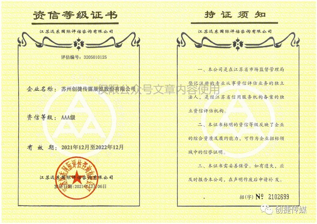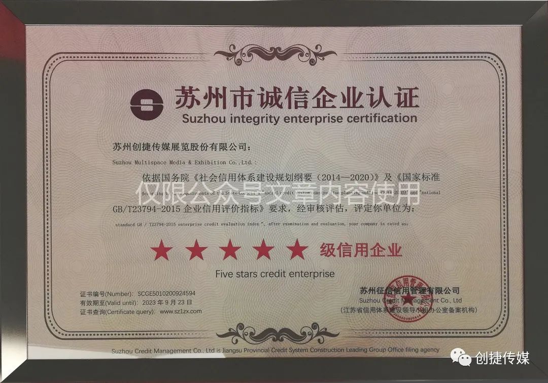 公司把诚信为本作为一种社会责任,贯穿到企业经营的全过程。公司是苏州市重合同守信用企业;获苏州市五星级诚信企业认证;同时资信等级每年度都为AAA级。公司成立至今20年,从未发生任何违法违纪的问题,对内每月按时发放工资,全额缴纳员工社保公积金,从来不存在偷税漏税现象;对外保护客户的合法权益,确保每个项目都做到对方满意。