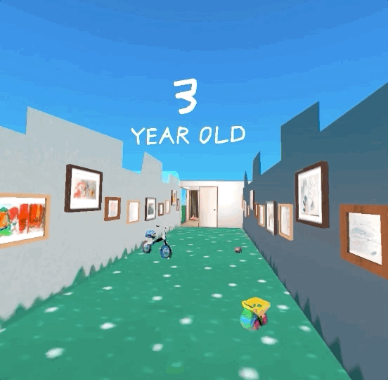 在剧场舞台上,拓君展示她的卡通画作,加上上可爱的歌声和动画。在舞台的后面藏着一个画廊,记录着拓君 4 岁时的画。走至尽头转角,又来到另一个画廊,放置着 3 岁拓君的涂鸦画。