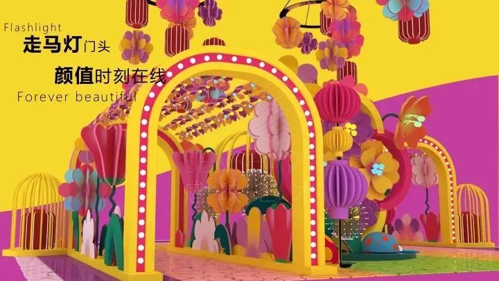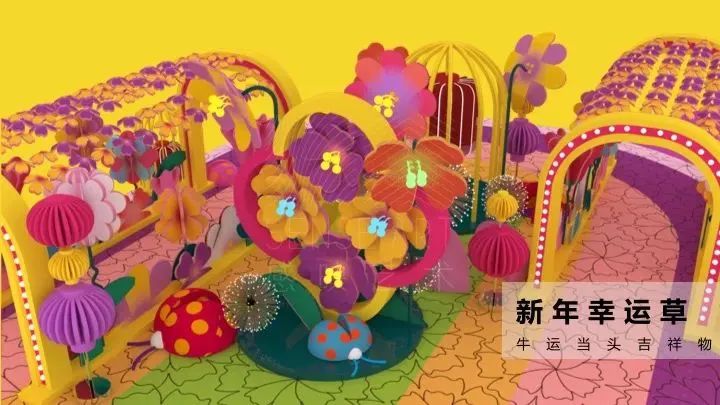 打破中国新年的传统美陈固化模式,来点“好彩”美陈。走进色彩缤纷的新年好彩花园,就能收获幸福、拿下新年的好彩头……繁花似锦,绽放的花卉包围着来宾,这一刻太幸福!
