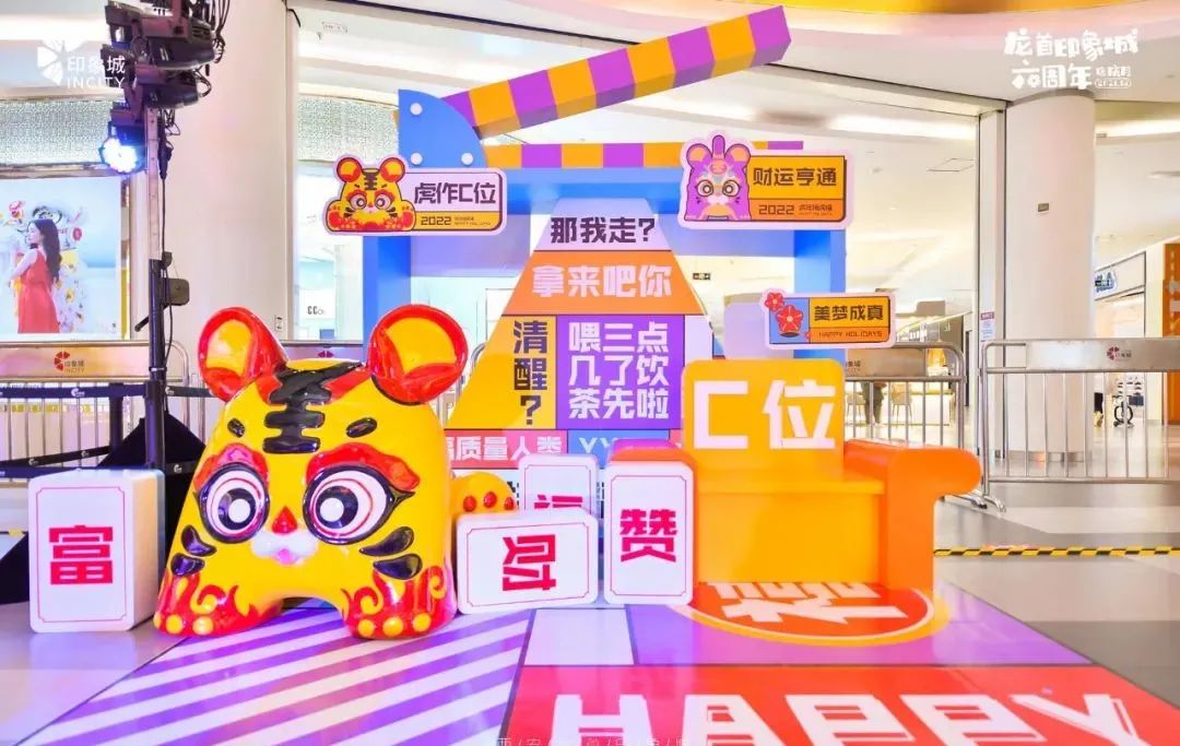 「虎作C位」原创IP展陪来宾迎接新年,这场原创IP展可以有四个展示点,第一站,虎作C位,虎年接虎福;第二站,虎兄能量“充电桩”;第三站,虎弟网红“打字机”;第四站,释放压力,虎虎生威。