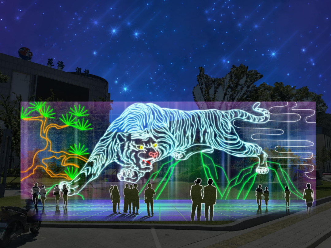 虎虎生威,在现场用激光雕刻出一只老虎,那场面一定科技感十足,既能满足新春主题,又能在开场时将气氛调动到最高点。