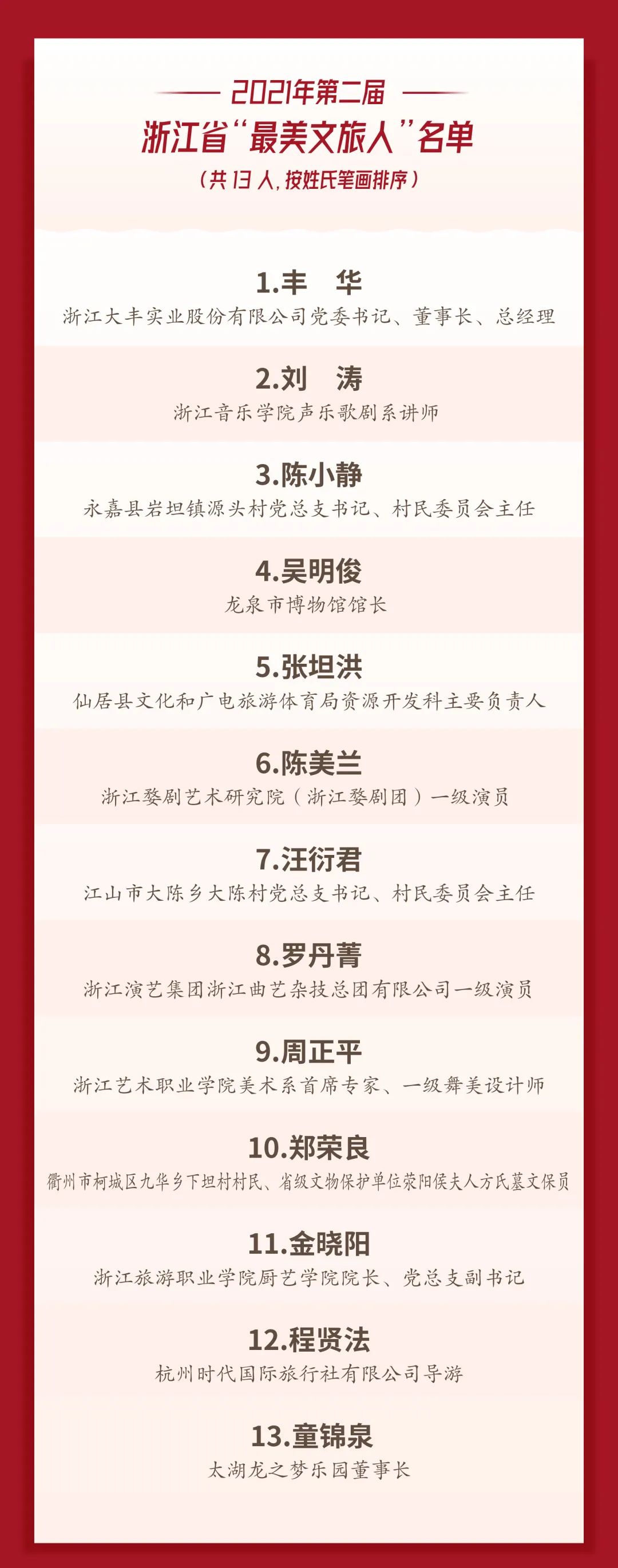 - 董事长丰华获颁“最美浙江人·最美文旅人”