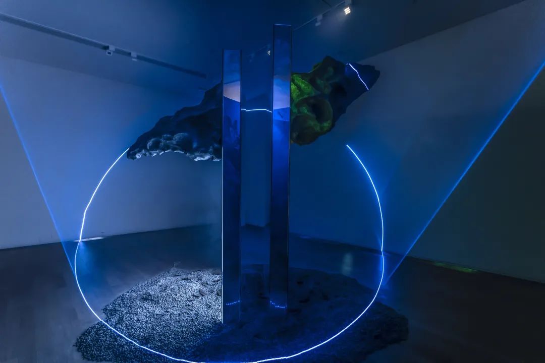 通过对 “石” 的切割、打磨、垒砌、重构,使之超脱自然、科技与秩序,转换质感的边界扰乱序列中原有的单⼀信息,内在蓄积的能量得以物化,来自自然精神的力量与感召得以流动其间。