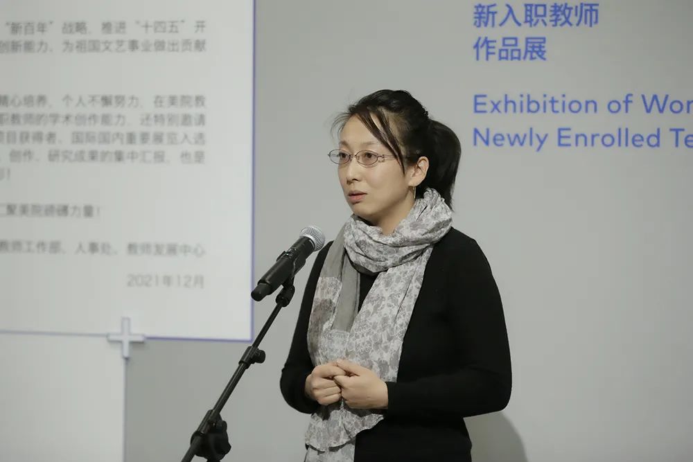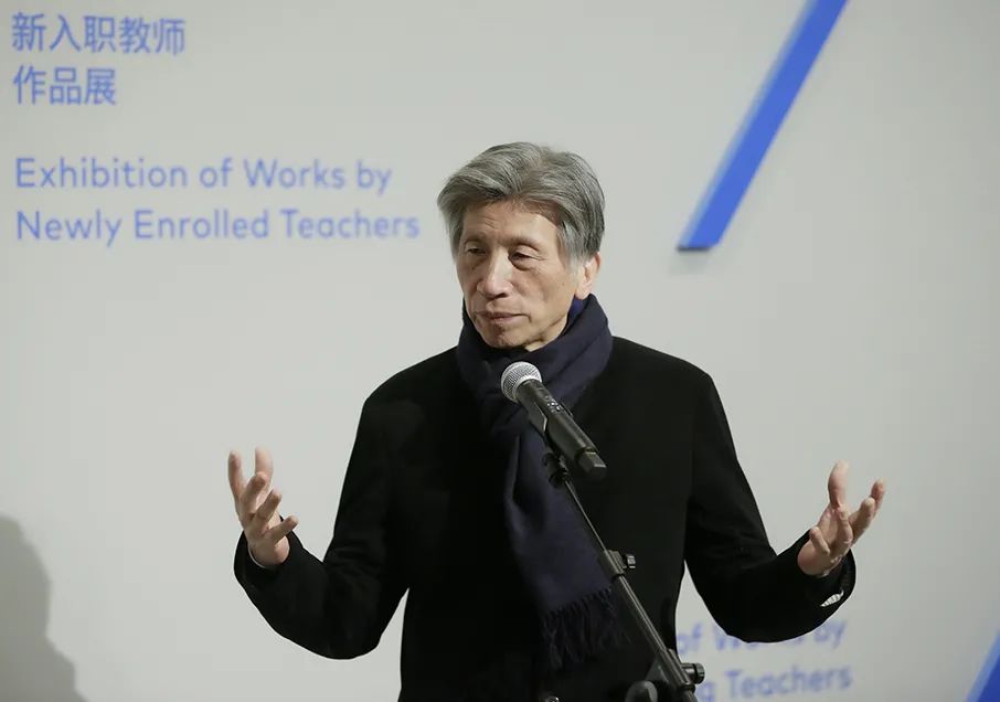 中央美术学院院长范迪安在致辞中,谈到2021年是不平凡又具有里程碑意义的一年:我们在欢庆党的百年华诞的各项活动中,展现了央美师生团队的新创造,向国家和人民贡献了央美智慧形成的新成果。学校一直以欣喜、高兴、充满希望的目光注视着走进央美队伍的新人。今年新入职教职工的培训采取新的做法,突出了新的主题,新入职教职工带着新美院人的精神气质,应对培训的成果给予好的评价。此次展览邀请青年教师和新入职教师一同展出,形成了一个活跃思想、开拓交流的氛围,展览的策划、设计等营造出一个小的学术环境,同时也是一次凝心聚力,思考学校事业发展的重要机会。