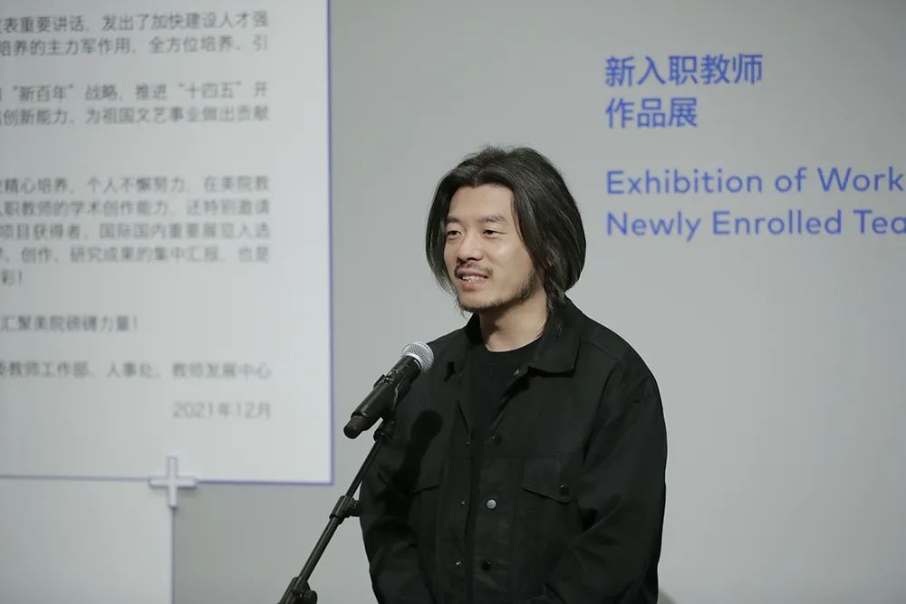 参展教师代表吴雪杉在发言中首先感谢了学校教师工作部(人事处)、教师发展中心为青年教师提供了一个展示任教成果的机会。作为从外单位调回美院任职的教师,他自觉在美院工作可以享受到美院的“光环”,而这个光环是前辈老师们前赴后继用上百年的时间打造出来的,他们的成就和名声打造的光环加持在这里的学生,以及后来到这里工作的老师身上。他从读本科开始,一直到硕士、博士在中央美术学院享受了十年的光环,希望未来能和参加此次展览的诸位青年教师将美院的光环变得更加明亮。