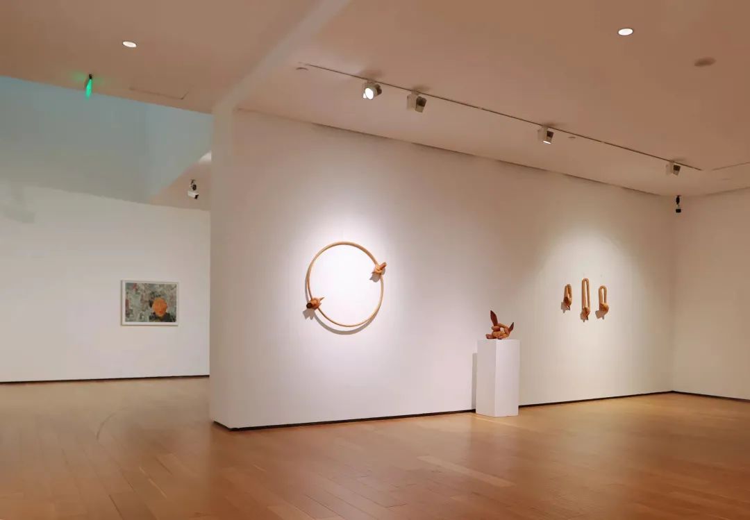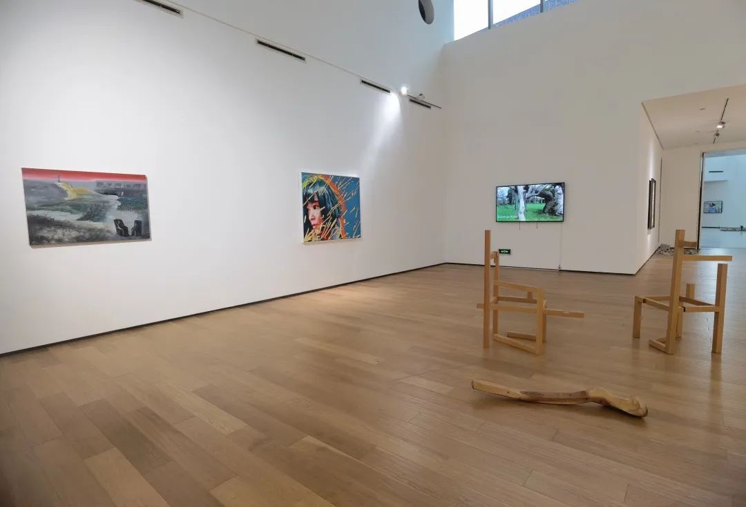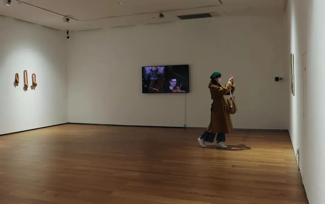 在6号展厅的连接处,阿里斯泰尔·麦克里南的作品《光谱艺术消失的点》,被布置成作品中现场的状态,在其记录表演的影像中麦克里南成为影像的介入者,同时也是一个诗意的导演,表演反映文化和基于所在地点的情景。这种对于时空的随机性,在葛平伟的作品中同样可以遇见,他的雕塑作品《结》系列,以“缘物得意”的方式,进行“人”与“物”的对话,在利用原生木结的基础上,又附加制作的绳结来呈现结的契合,形成的人与自然的存在状态, 来求得材料和塑造物所形成的合一关系。