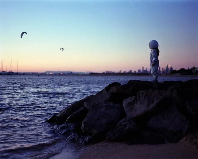 然而,在新冠的影响下,他已经不能再像以前那样自由的旅行了,虽然人被限制了,但他的思维没有被限制,反而让他有了灵感给女儿拍摄了这样的一组照片: