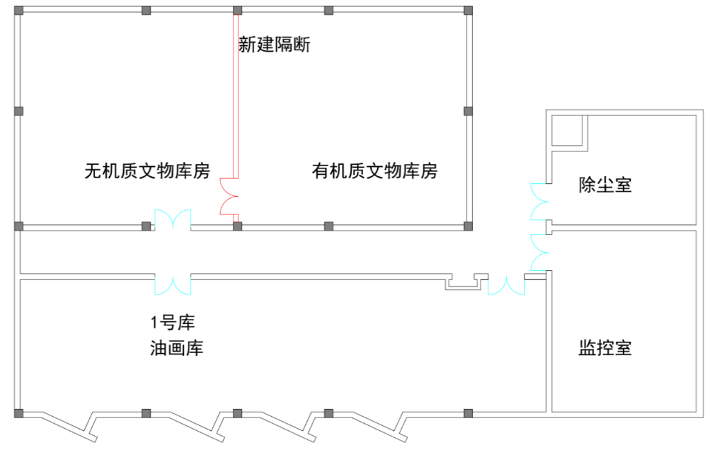 分区保管文物。不同材质的文物对保护环境的温湿度均有不同要求,此次文物库房改造,将改变现有大环境保护现状,将馆藏文物库房一分为二,分为有机质文物库房和无机质文物库房,分区保管文物,中间新建隔断墙,隔断墙新增一扇库房防盗门。