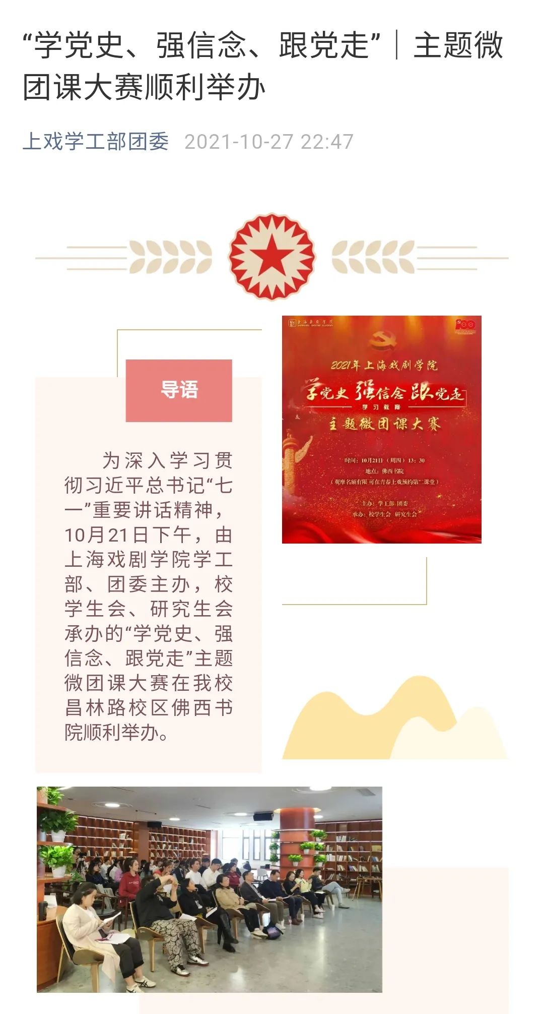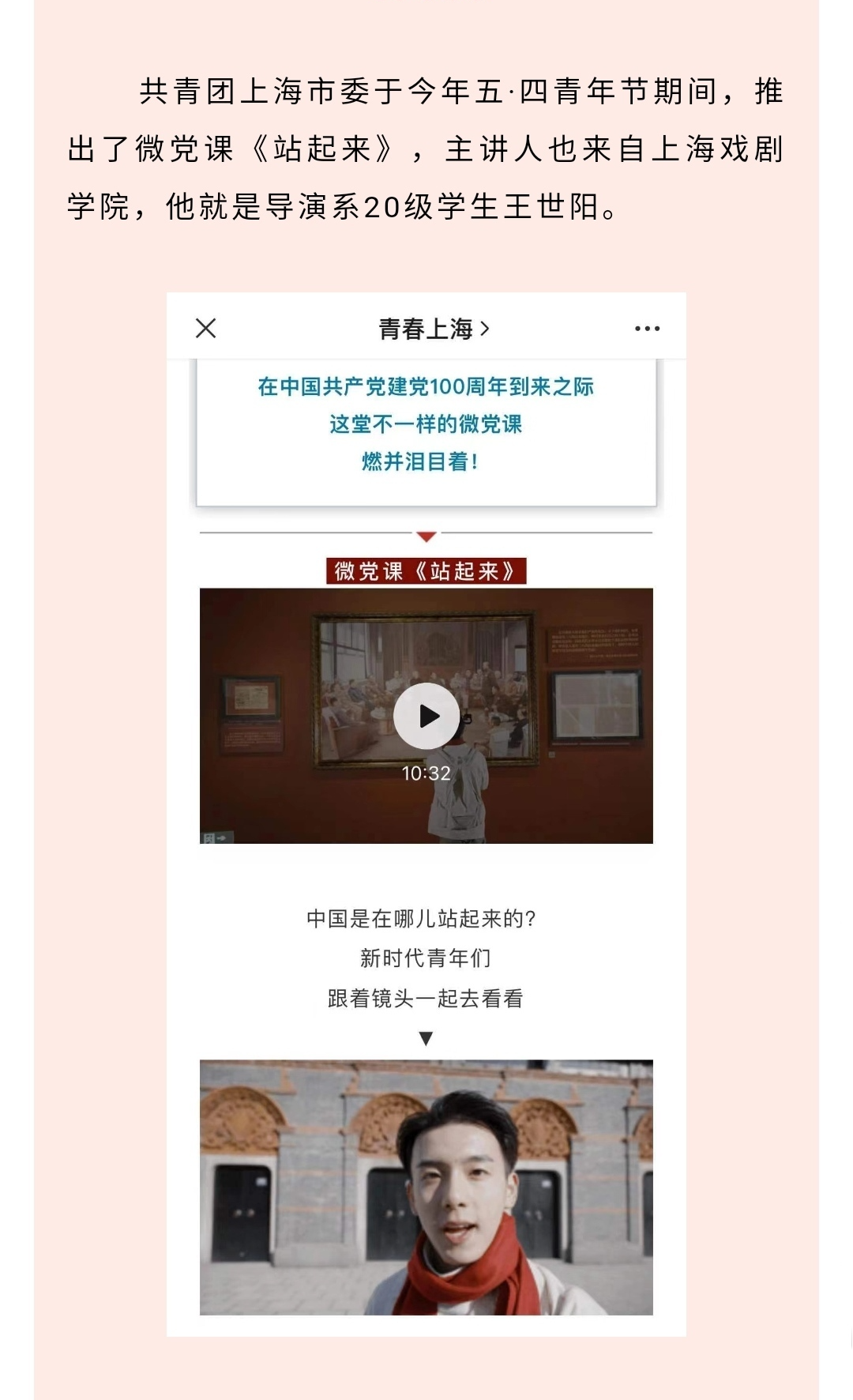 党史学习教育开展后,上海戏剧学院以各种方式推进党史内容和党史精神向青年学生传播,而90后00后们也发自内心地表达了“听党话、跟党走”的信念。