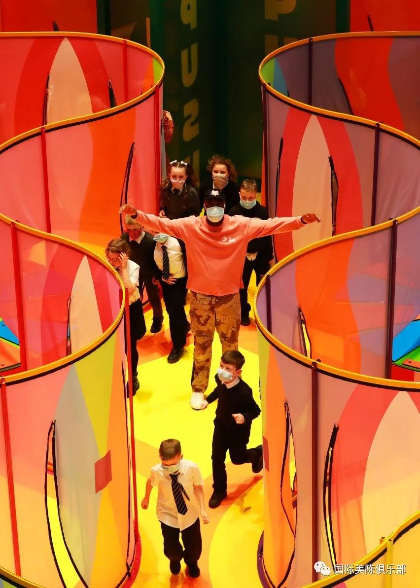 近日,设计师Yinka Ilori为英国V&A博物馆邓迪分馆(V&A Dundee)创造了一个名为《Listen to Joy》的彩色迷宫游乐园,以图案、音乐和色彩为特色,探索成人和儿童如何理解空间的差异,展览至2022年4月24日结束。