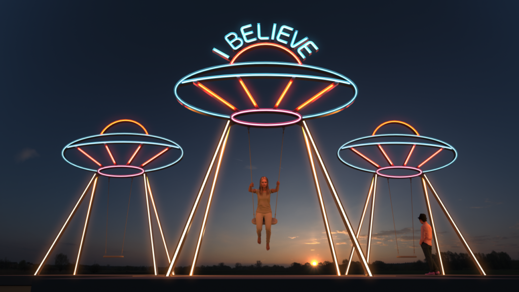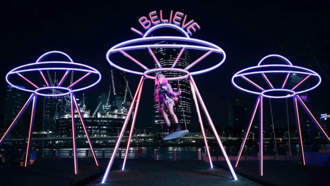 ENESS一直积极打造能为人们带来快乐和幸福感的作品,这次为我们带来了《 I believe 》发光秋千装置,这三个发光秋千安装在户外,鼓励我們以童真和童心探索世界。