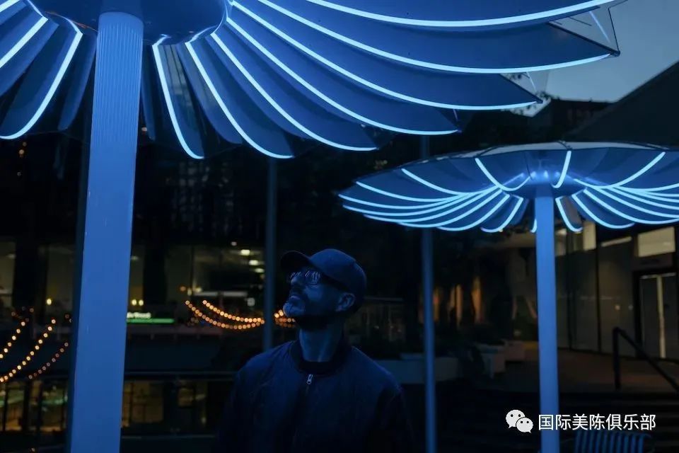 《Parasol》随着音乐的节奏,变化不同的灯光在菇伞下流窜。