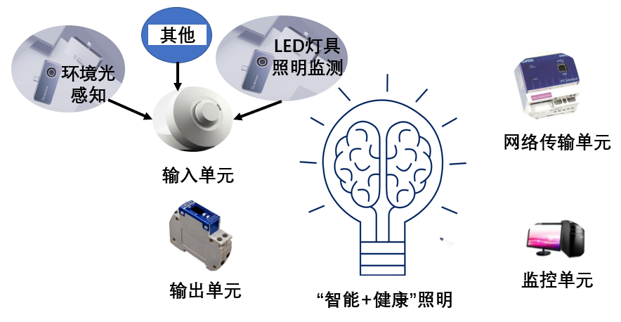 想要实现照明的健康化和智能化,系统的组成需要输入单元、网络传输单元、输出单元、监控单元。传感技术是系统组成部分中的核心技术壁垒,外部环境变化的感知与采集,是实现照明健康化和智能化的重要环节。通过集成与光光谱芯片的传感器收集光环境的照度和色温的变化,然后发指令给灯具,让灯具依照设定好的逻辑与算法去完成动态的表现。