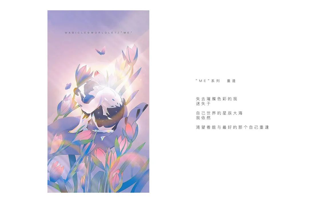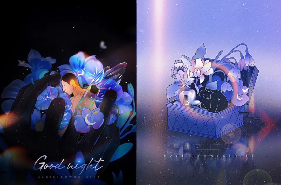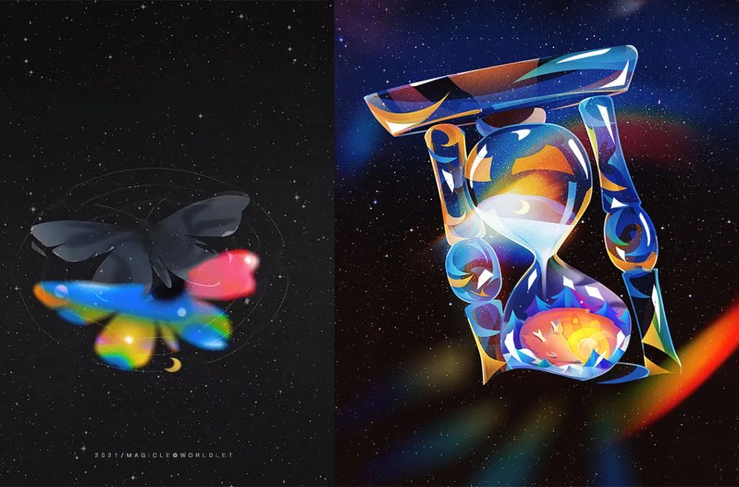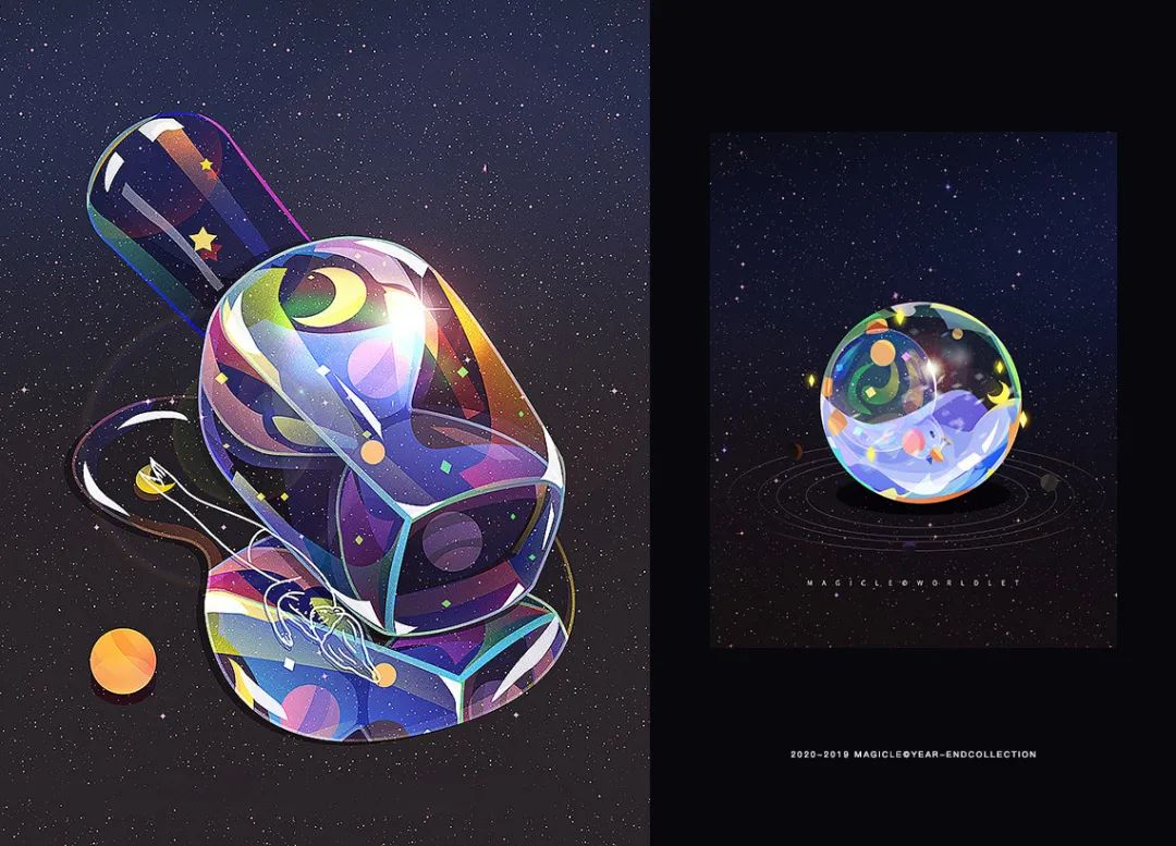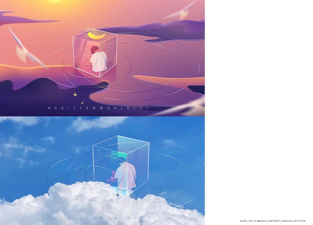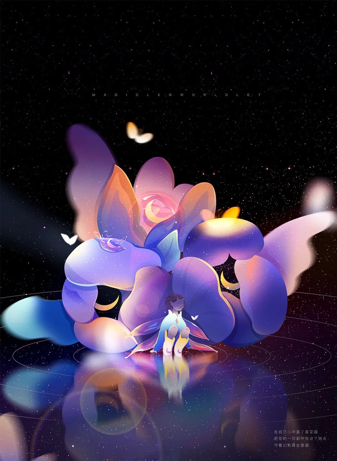 Magicle,自由插画师,视觉中国、腾讯原创馆签约画师,小红书、动漫报、站酷网等艺术设计网站首页推荐插画师。想用绚烂的色彩与透明的质感向世人传达:“每一个孤单之人都有属于自己的奇幻世界”。