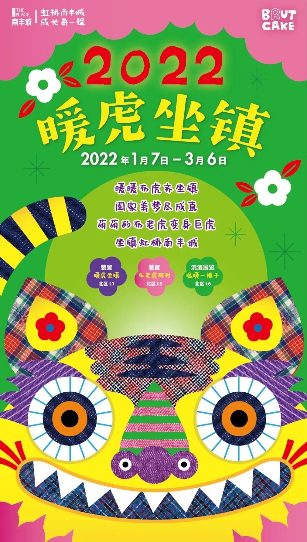 2022年1月7日至3月15日,虹桥南丰城再次携手@Brut_Cake ,举办“暖虎坐镇”展览,以虎为元素,打造不一样的文化“寅”新!以暖心为初衷创作,重新定义传统民间文化的元素,讲述非遗故事。用艺术的温暖疗愈当下的焦灼,让爱无限传递,为迎接春的到来而翻开新的一页吧!