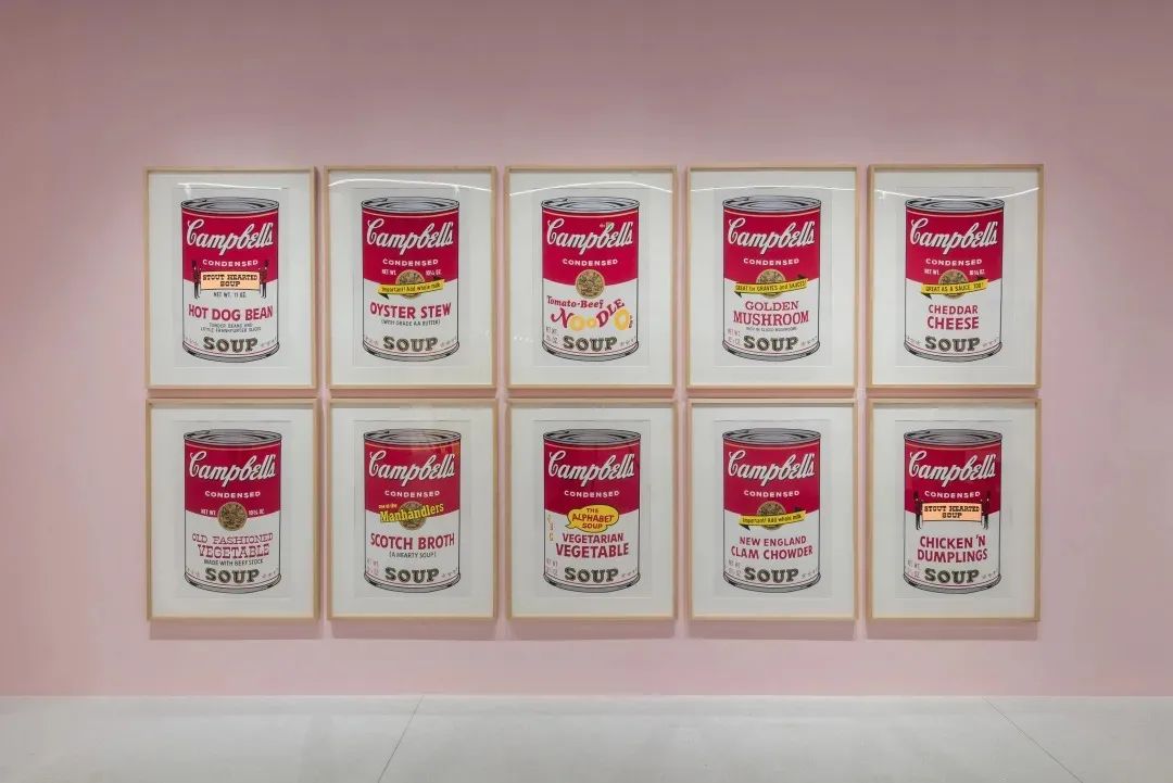 棕色区域展示了沃霍尔在时尚品牌和百货公司工作期间成功涉足商业艺术,并在此期间创作的最早的波普绘画作品。
