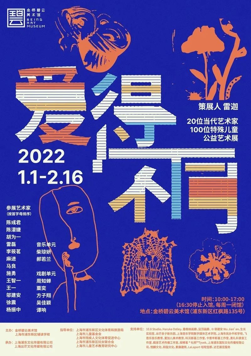 2022年1月1日至2月16日,金桥碧云美术馆将推出“爱得不同:20位当代艺术家、100位特殊儿童公益艺术展”。本次展览以上海市浦东新区辅读学校残障学生的美术习作作为展览的切入点,聚焦残障儿童不为人知的日常生活学习。展览受到二十位国内顶尖艺术家们和各界人士的鼎力支持,艺术家们运用不同的艺术表达媒介常年将目光落在我们所处的社会中,关注人们在生命中所经历的观察和身心变化。本次展览策展人雷迦女士用《爱得不同》表达展览的主题:爱得不同,是等待和遇见,是赋予和发现。爱让不同的生命遇见,不同的表达因艺术融合,因美育化心灵。